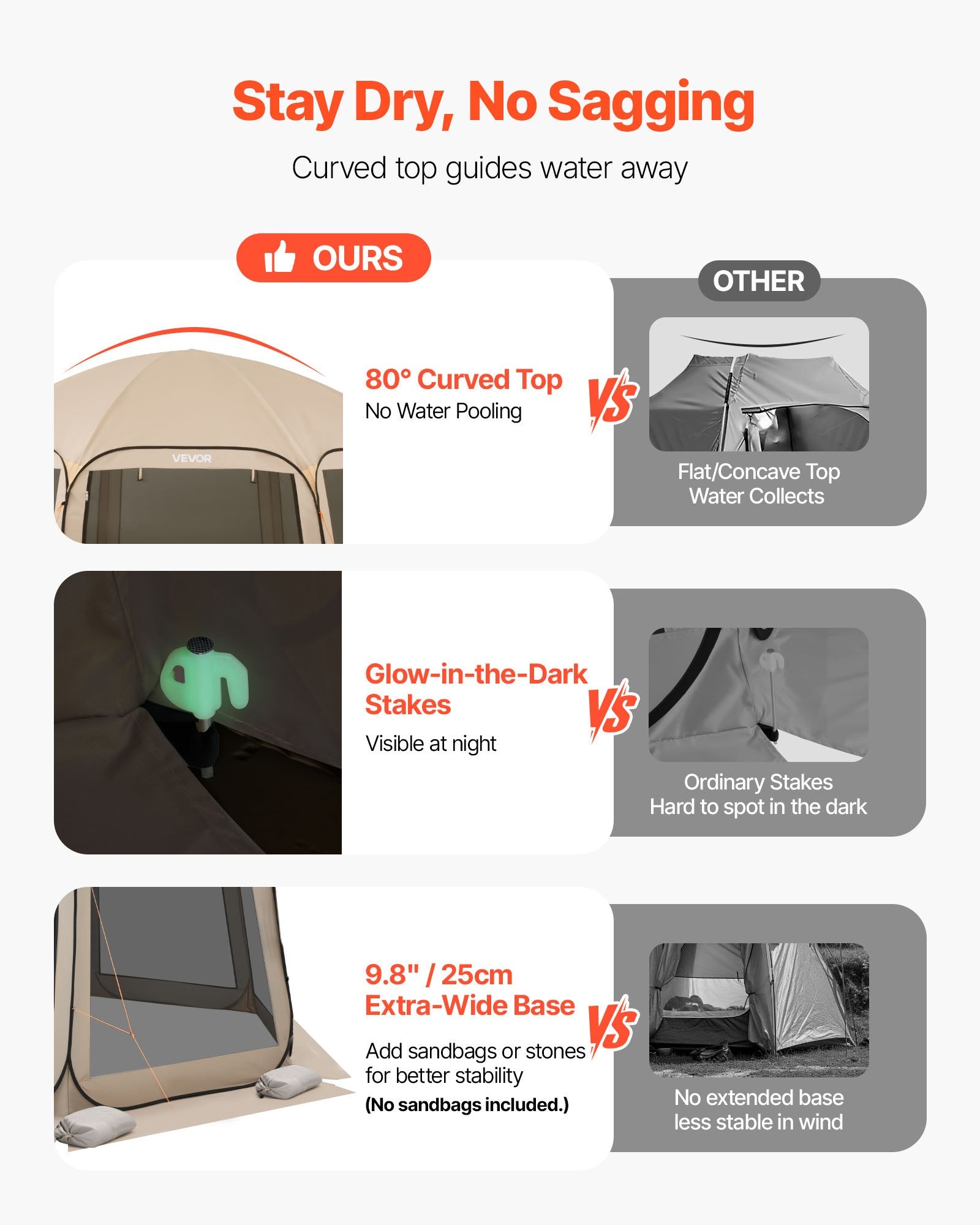 - Stable & Windproof Structure: Reinforced fiberglass and steel poles keep the pop up screen tent upright even in windy conditions. The curved top design avoids water pooling and sagging