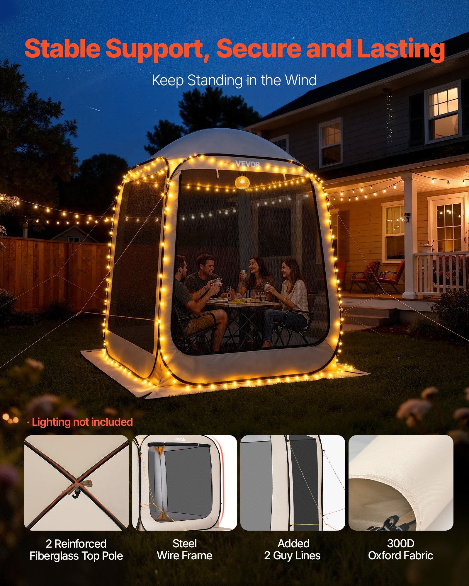 - Stable & Windproof Structure: Reinforced fiberglass and steel poles keep the pop up screen tent upright even in windy conditions. The curved top design avoids water pooling and sagging