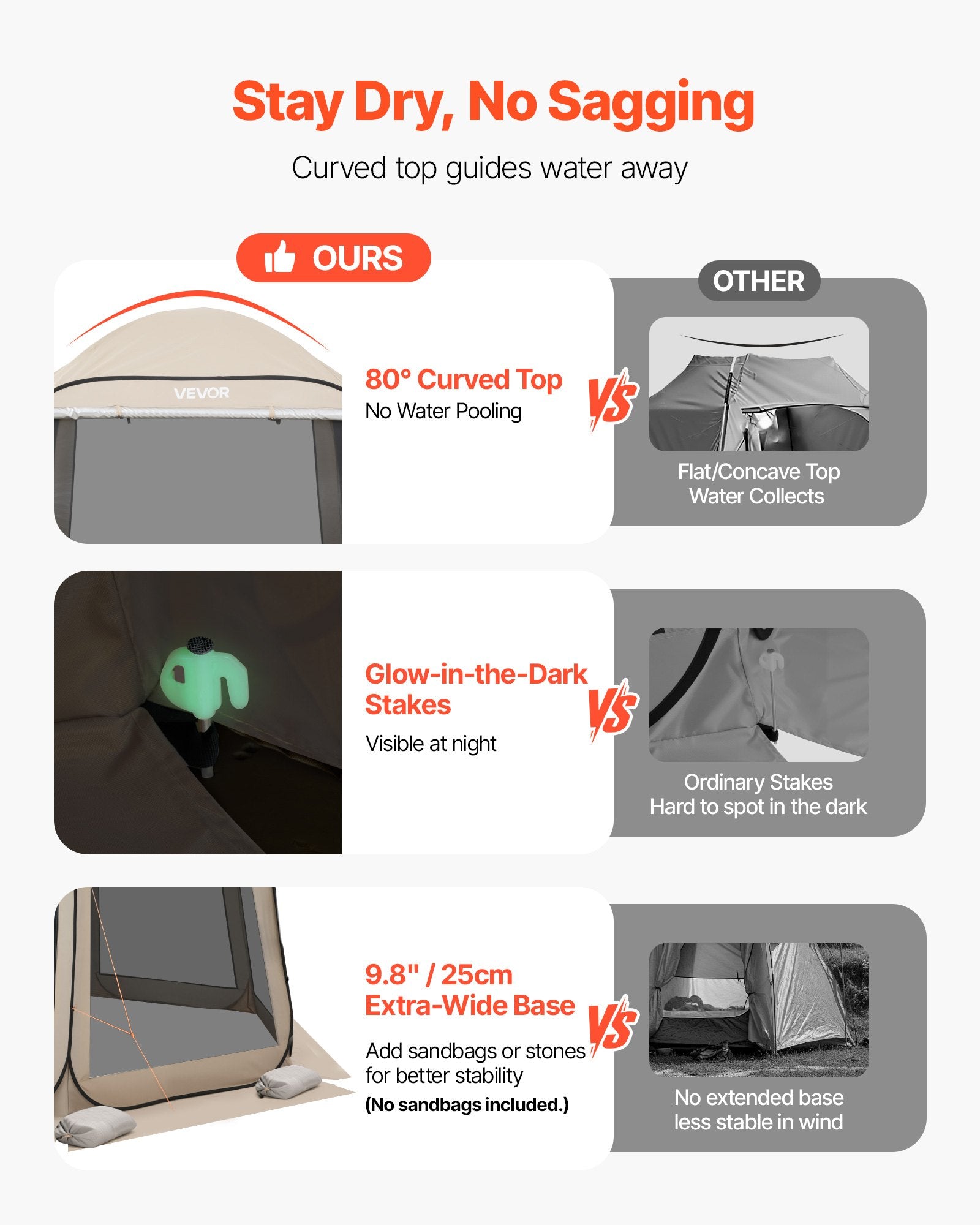 - Stable & Windproof Structure: Reinforced fiberglass and steel poles keep the pop up screen tent upright even in windy conditions. The curved top design avoids water pooling and sagging
