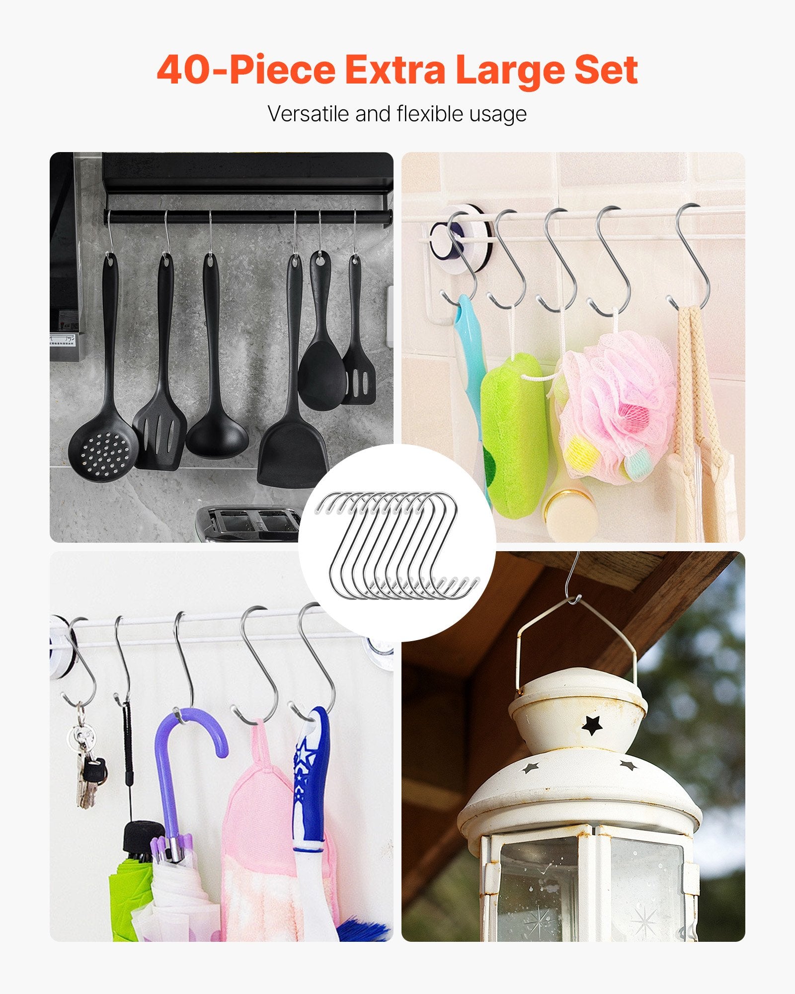 - S-Shaped Double Hook: Our kitchen hooks feature a top and bottom double hook design. The top hook fits various rod sizes, while the bottom hook allows for flexible hanging of items. The loose size accommodates different use scenarios, helping you keep your home tidy and saving space wherever you need it