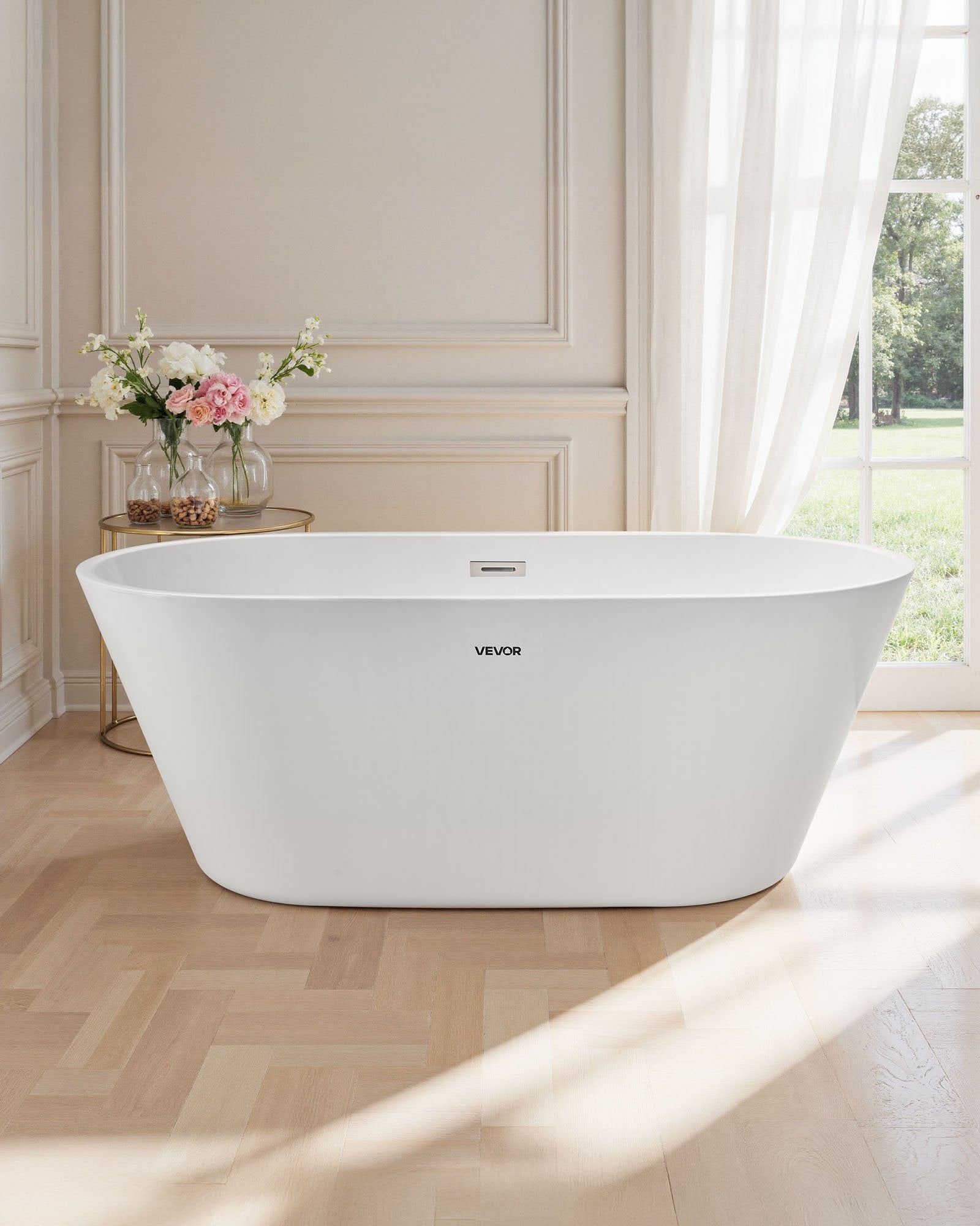 - Spacious Deep Soak Tub: Our acrylic freestanding tub measures 59 x 29.5 x 22.8 inches with a 60.7 Gal capacity, allowing water to cover your shoulders for a warmer, more relaxing soak