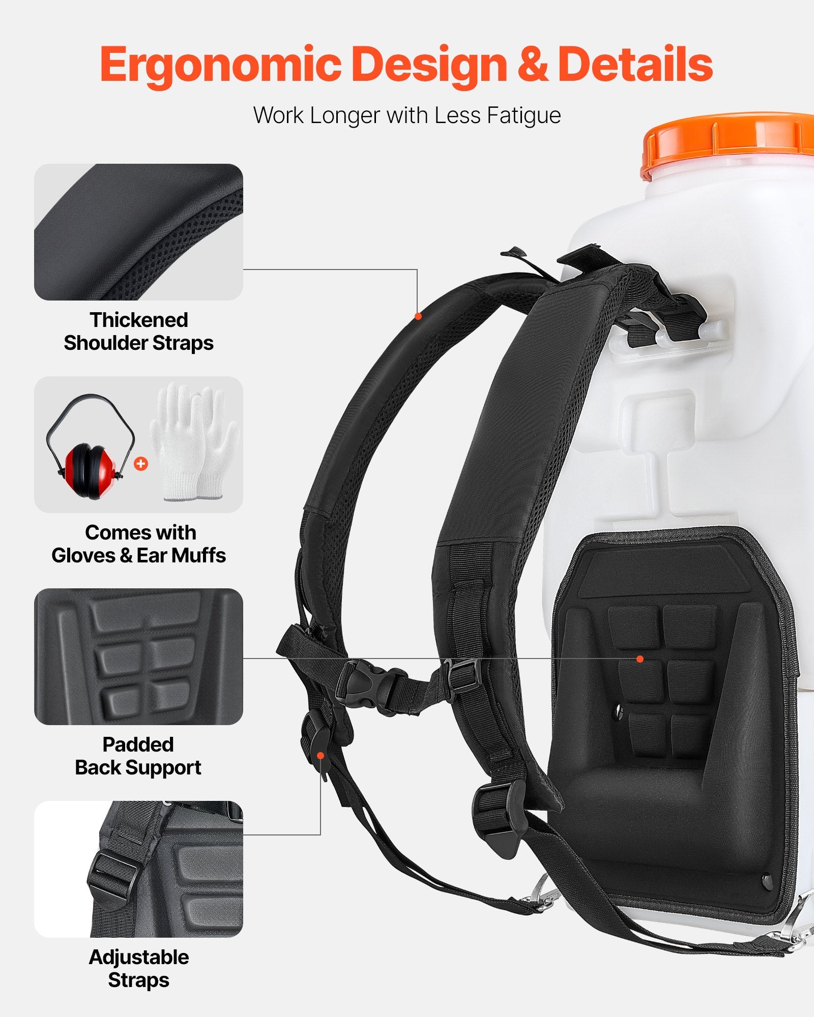 - Comfortable Backpack Design: The backpack fogger sprayer features padded shoulder straps and a vented back cushion for comfort during extended use, reducing fatigue.
