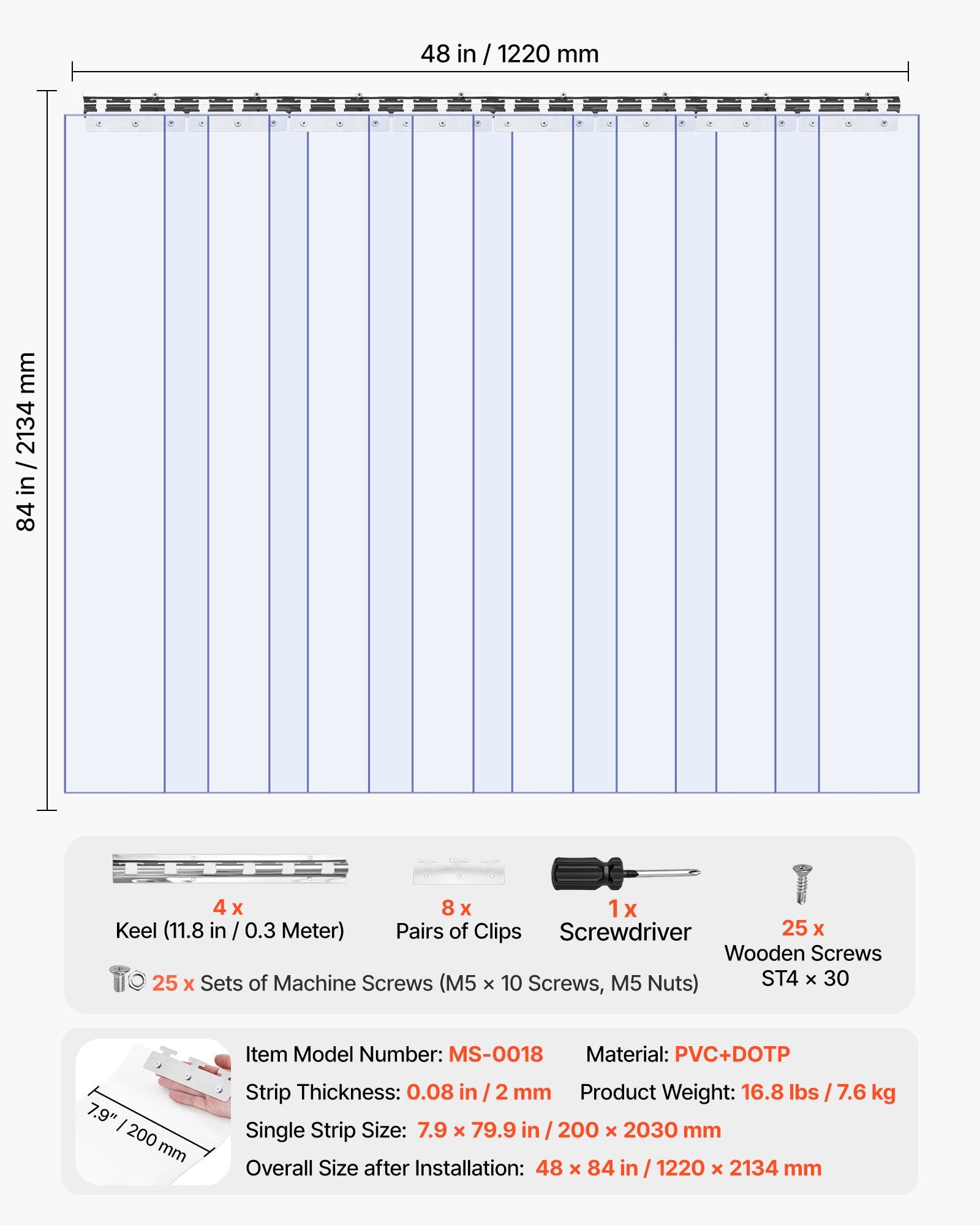 - Excellent Fit: Measuring approximately 84 in long and 48 in wide, this plastic door strip offers full, effective coverage for your doorway. With a sturdy 0.08 in thickness, it's designed for frequent use without losing its shape or strength