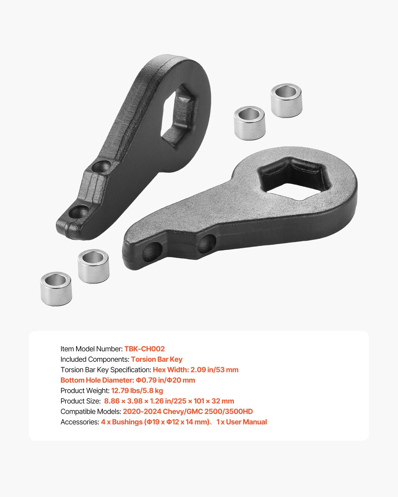2 Inch Torsion Bar Keys for 2020-2024 Chevy/GMC 2500/3500HD, Front Leveling Lift Kit Heavy-Duty Steel Suspension Level Kit with 4 Bushings, Chassis Leveling Kit Compatible with Chevy and GMC