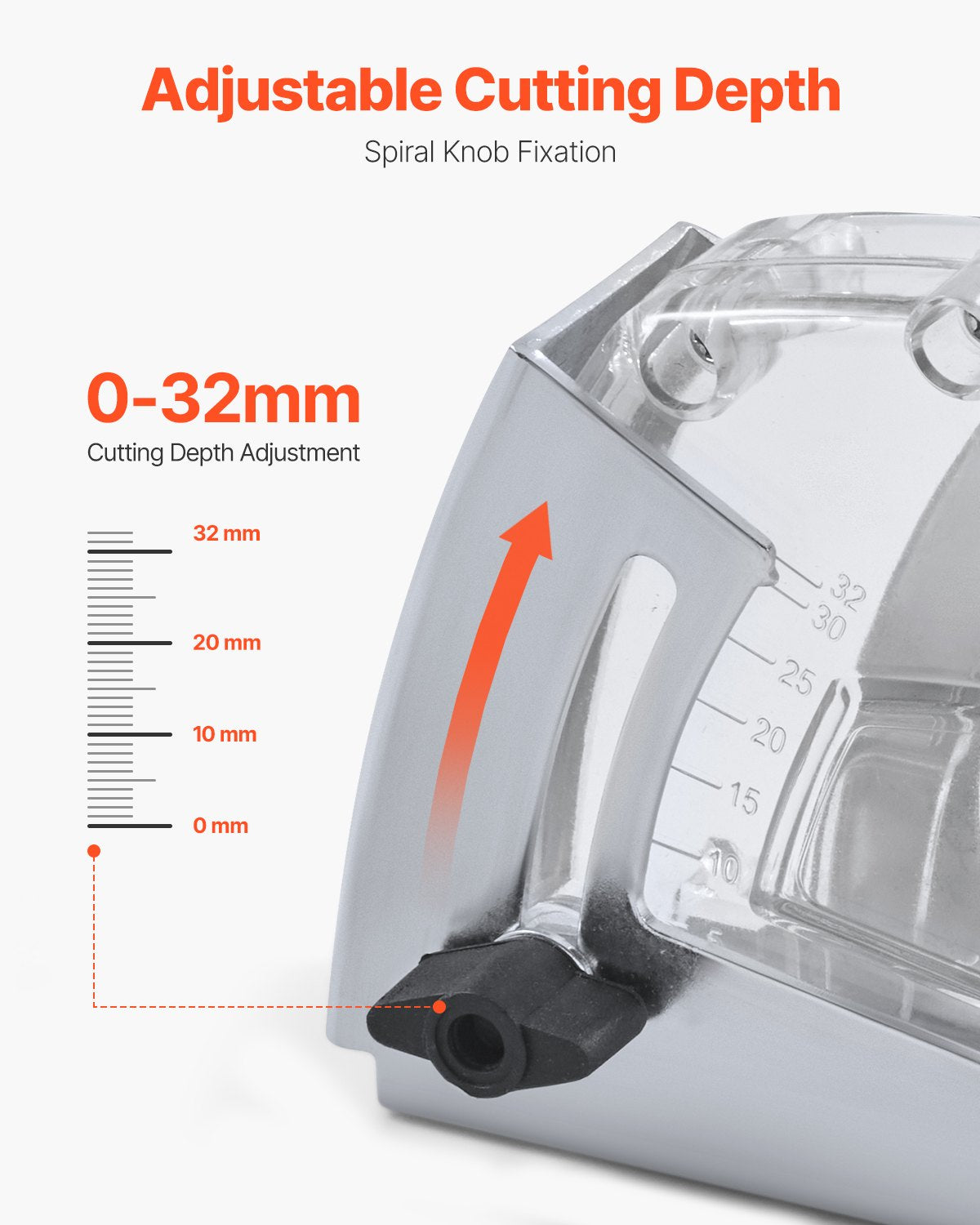 - Adjustable Cutting Depth: This grinder dust shroud features a 0-32mm adjustable cutting depth. Slide the base plate to adjust the cutting depth, and secure it with the knob for precise cutting.