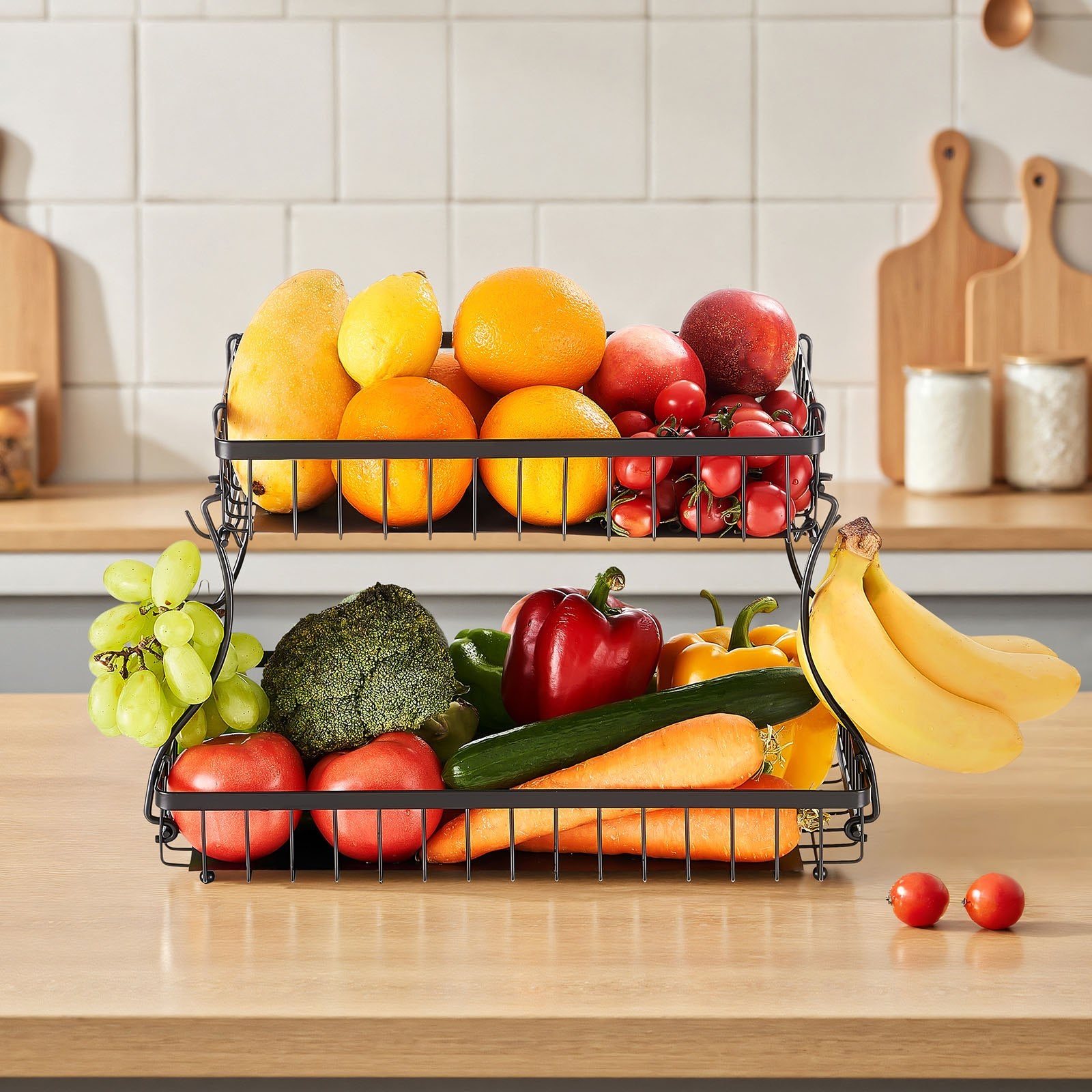- Detachable Assembly: No complex tools required. Our metal wire fruits storage stand can be separated into 2 independent baskets. Flexible adjustment to suit different kitchen environments and storage needs