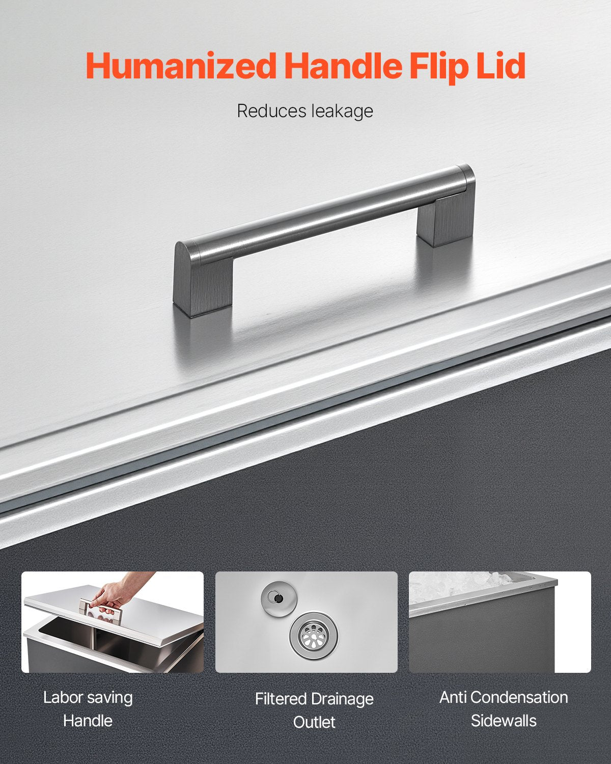 - Versatile Use: The ice storage chest can be installed in beverage stores, hotels, or bar counters. It is also suitable for indoor and outdoor kitchen counters. The embedded installation saves significant space, and you can take it to outdoor scenarios without needing a refrigerator