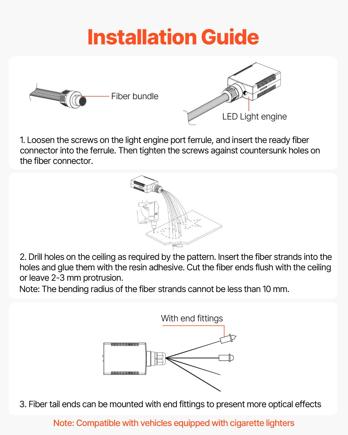 - Fiber Optic Quantity & Specs: 150 pcs, 0.03 in / 0.76 mm, 6.5 ft / 1.98 m
