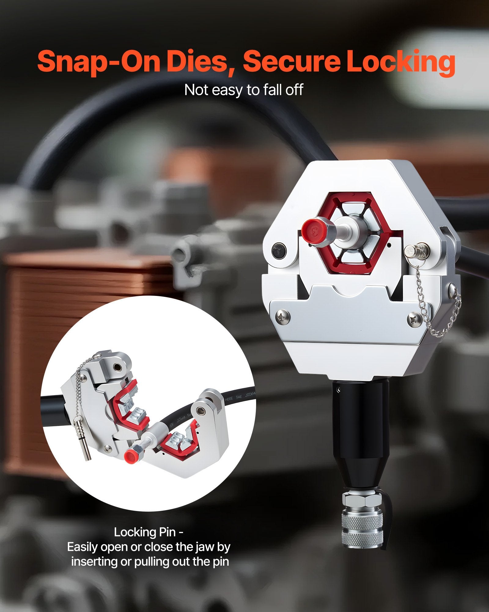 - Flexible & Easy Operation: The snap-on die design allows quick, tool-free installation and secure attachment to the press fixture. Simply turn the hydraulic valve and press the handle to achieve high-quality crimping for hydraulic A/C hoses