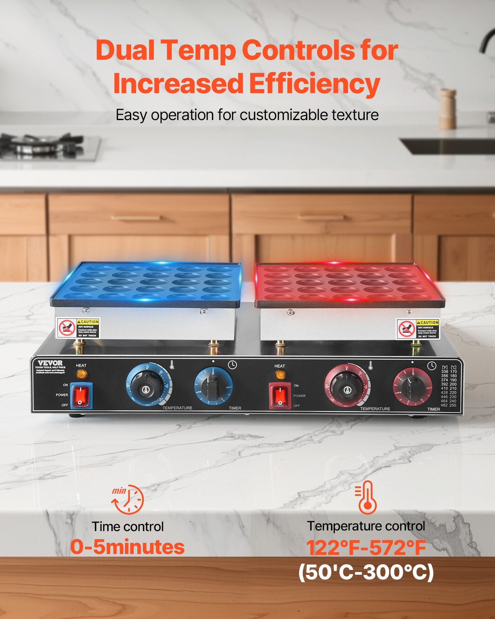 50PCS Mini Dutch Pancake Maker, Non-stick Stainless Steel Dorayaki Baker, 1800W Commercial Electric Poffertjes Grill Pan, Dual Temp & Time Control, for Kitchen Restaurant Breakfast Dessert