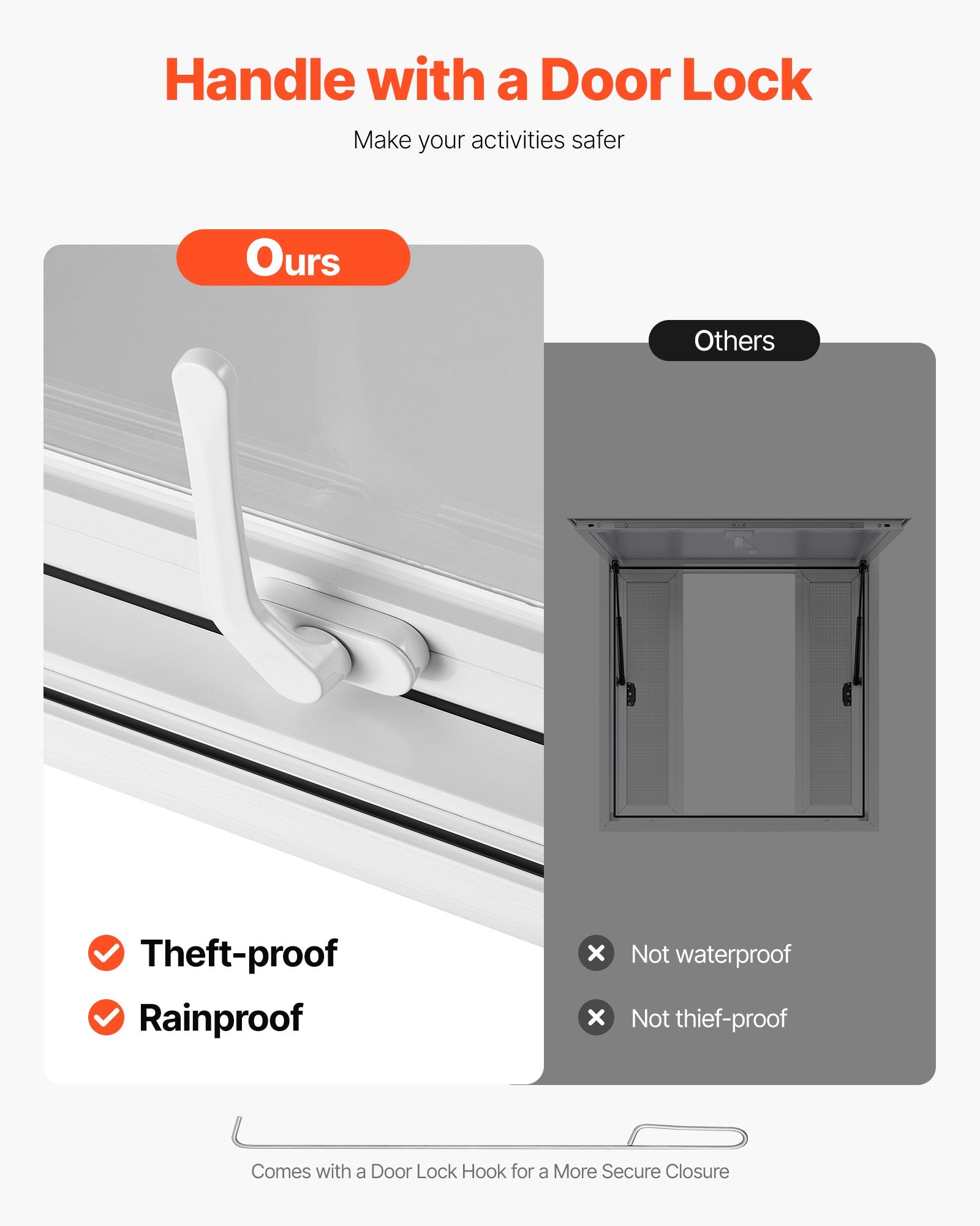- Four Screens: This food truck service window includes 4 screens. The 0.6mm mesh guards food from leaves and debris. Double sliding tracks allow flexible window positioning. The window features two keyed locks for secure locking