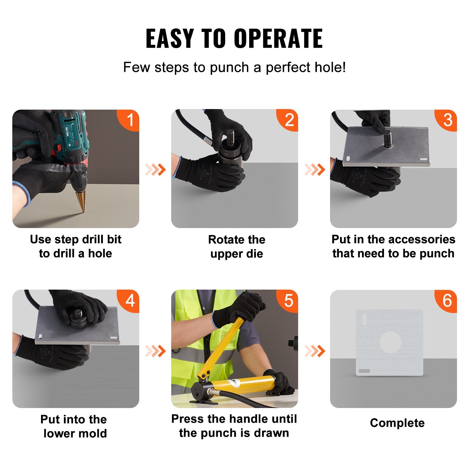 - Wide Application: Experience more versatility with our professional-grade hydraulic knockout punches and dies! Perfect for drilling holes in a wide range of materials, including stainless steel, iron, aluminum, plastic, and glass fiber. This punch set is the go-to choice for professionals everywhere, from wire pipelines to construction sites and electronics to chemical industries.