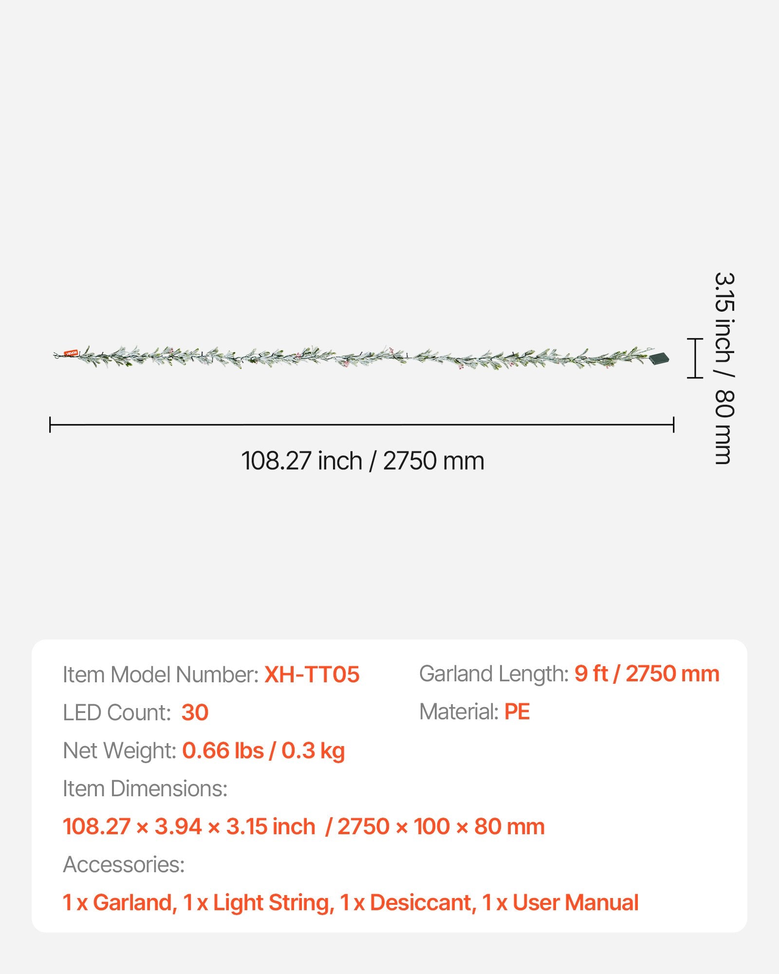 - Includes LED Lights: Equipped with 30 warm white LED lights, this greenery garland glows softly at night, creating a cozy and festive atmosphere for your holiday space. Requires 3 AA batteries (not included)