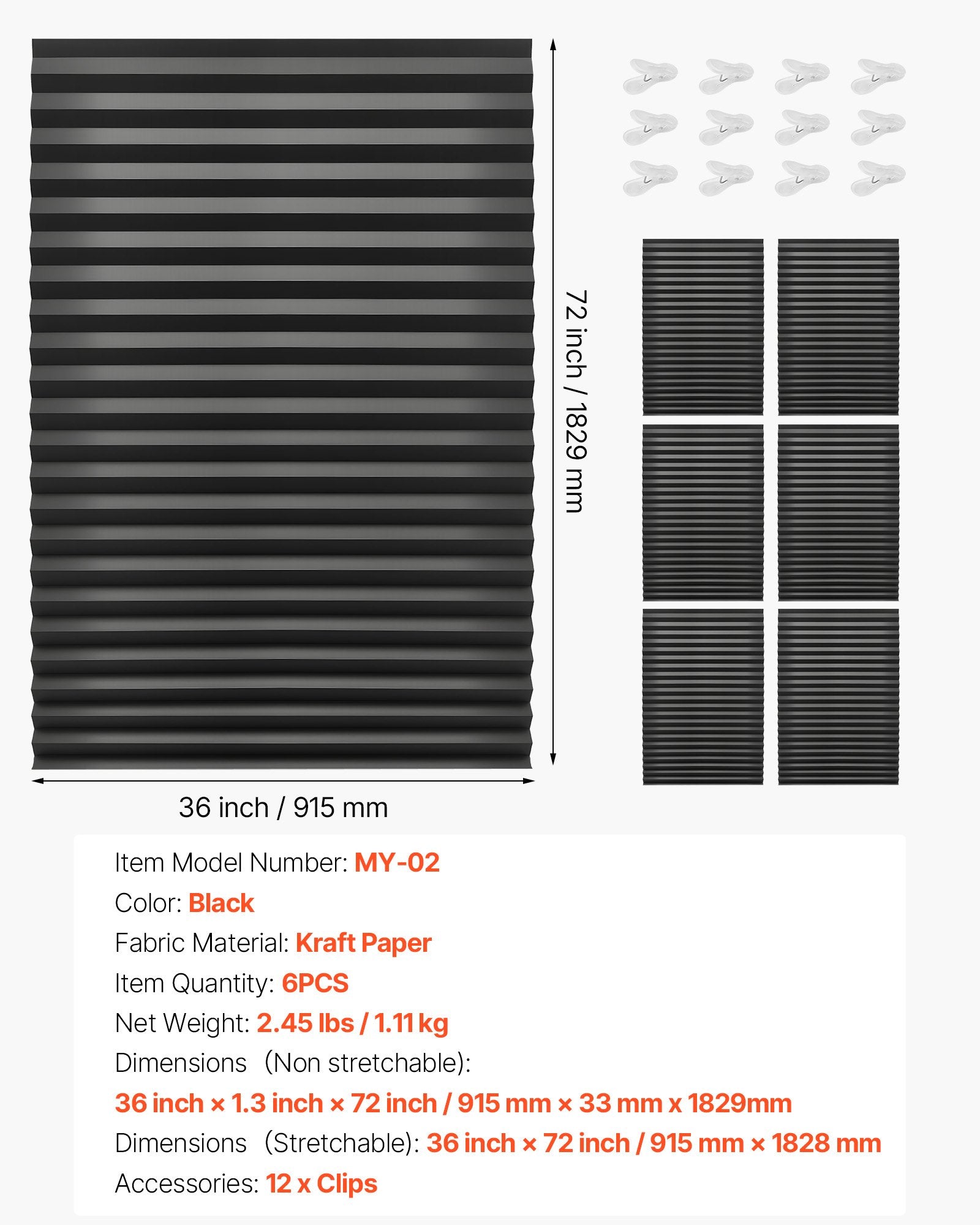 Paper Blinds, 6 Pack, 36 in x 72 in, Temporary Blackout Pleated Paper Shades, No Tools No Drilling, Pleated Blinds with Adhesive, Easy to Cut and install, for Indoor Windows, Kitchen, Bedroom