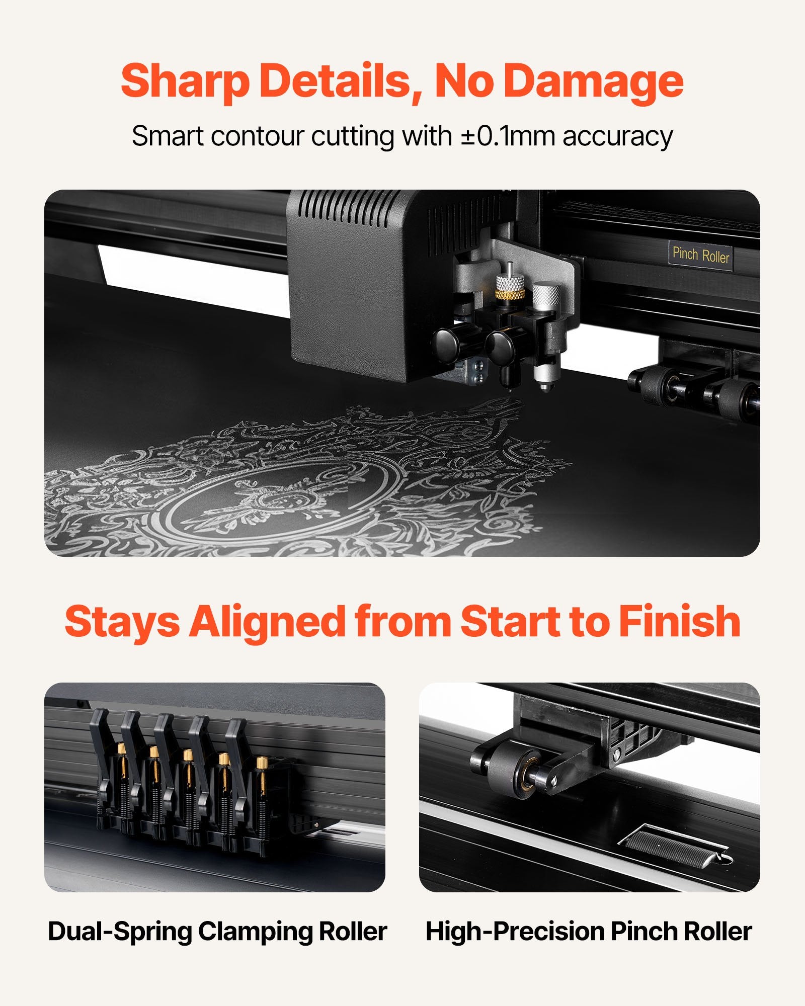 - Precise Cutting: Intelligent contour detection with ±0.1 mm accuracy and dual-spring pinch rollers keep media steady. Even during long cuts, the vinyl printer and cutter delivers exact tracking, clean edges, and flawless detail handling