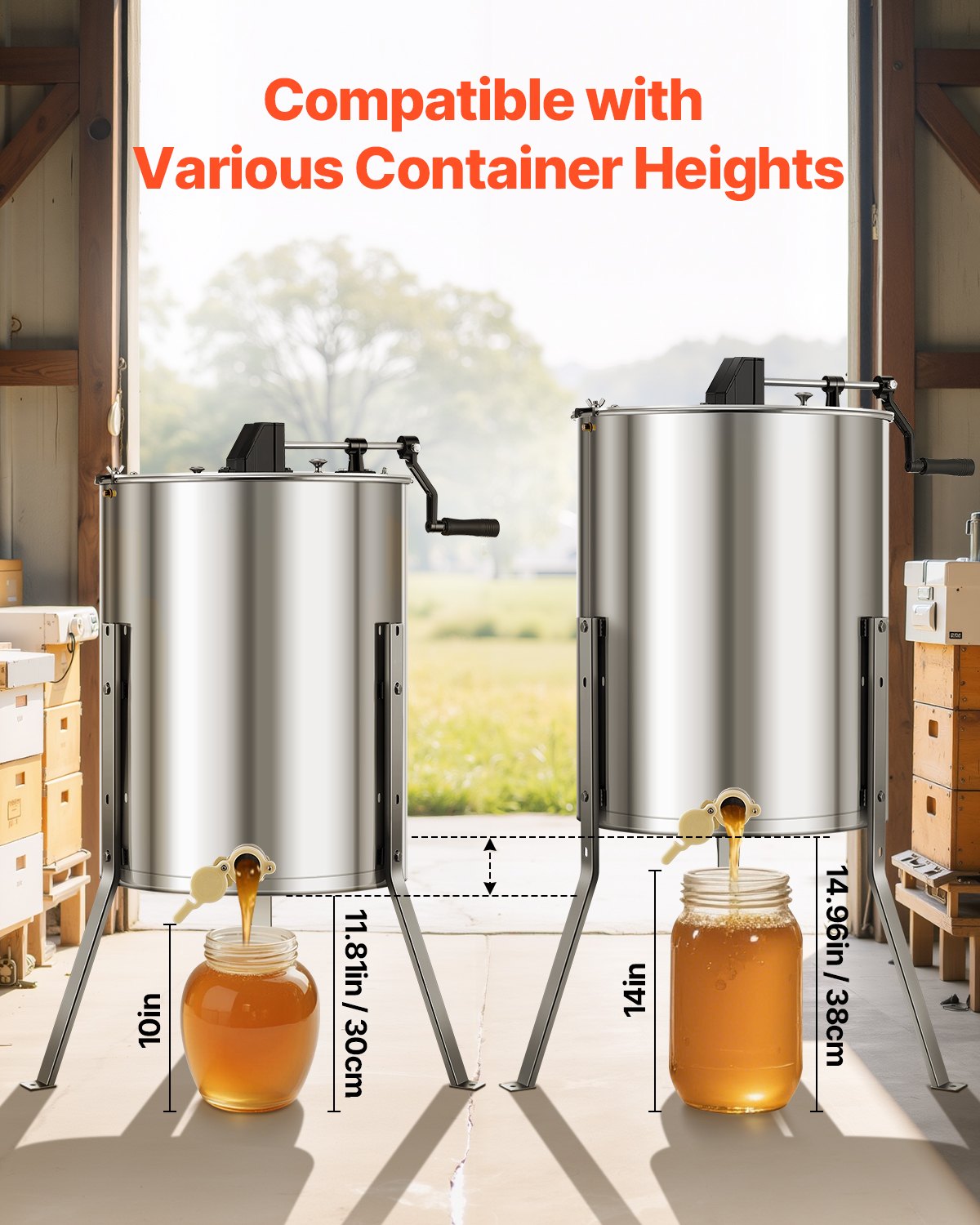 - Versatile Compatibility: This 4/8 frame honey extractor is suitable for shallow, medium, and deep frames. The metal gears are enclosed to keep honey clean.