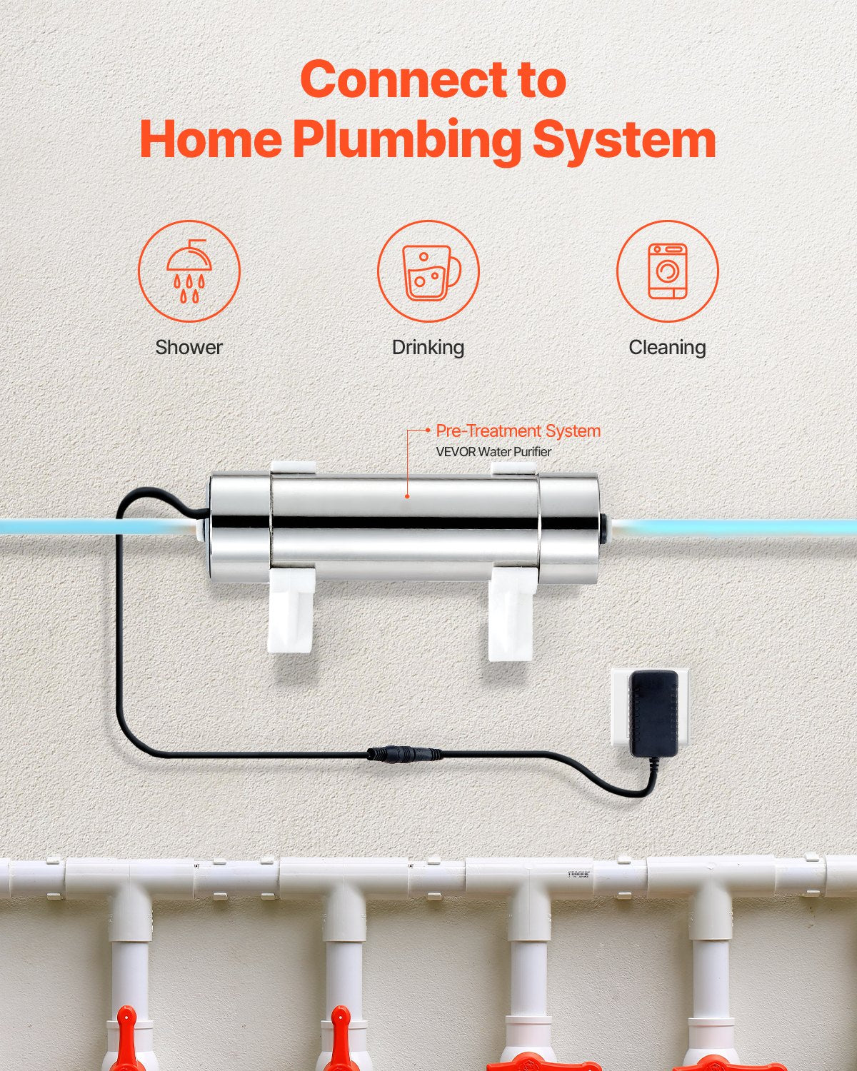 - Efficient UV Purification: The stainless steel chamber enhances ultraviolet reflection efficiency, achieving a sterilization rate of up to 99.99%. With a lifespan of 2 years and a high-stability electronic ballast, it consistently provides pure water for your entire household.