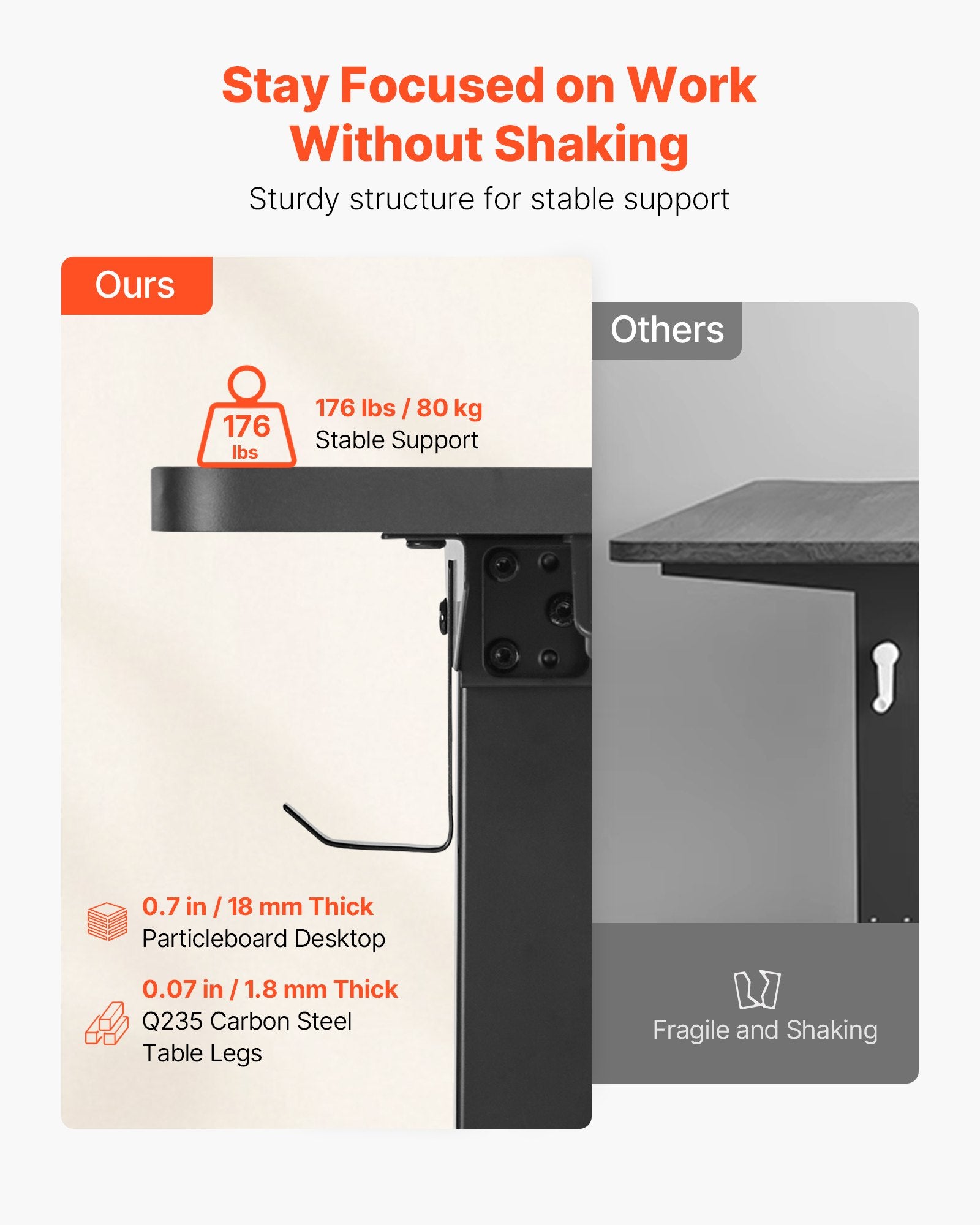 - Sturdy Frame & Thick Desktop: This adjustable corner computer desk features a high-carbon steel frame and a thick particleboard desktop, ensuring durability and maximum stability. It provides a longer lifespan and stronger load-bearing capacity, supporting up to 176 lbs / 80 kg to securely hold multiple devices for office use