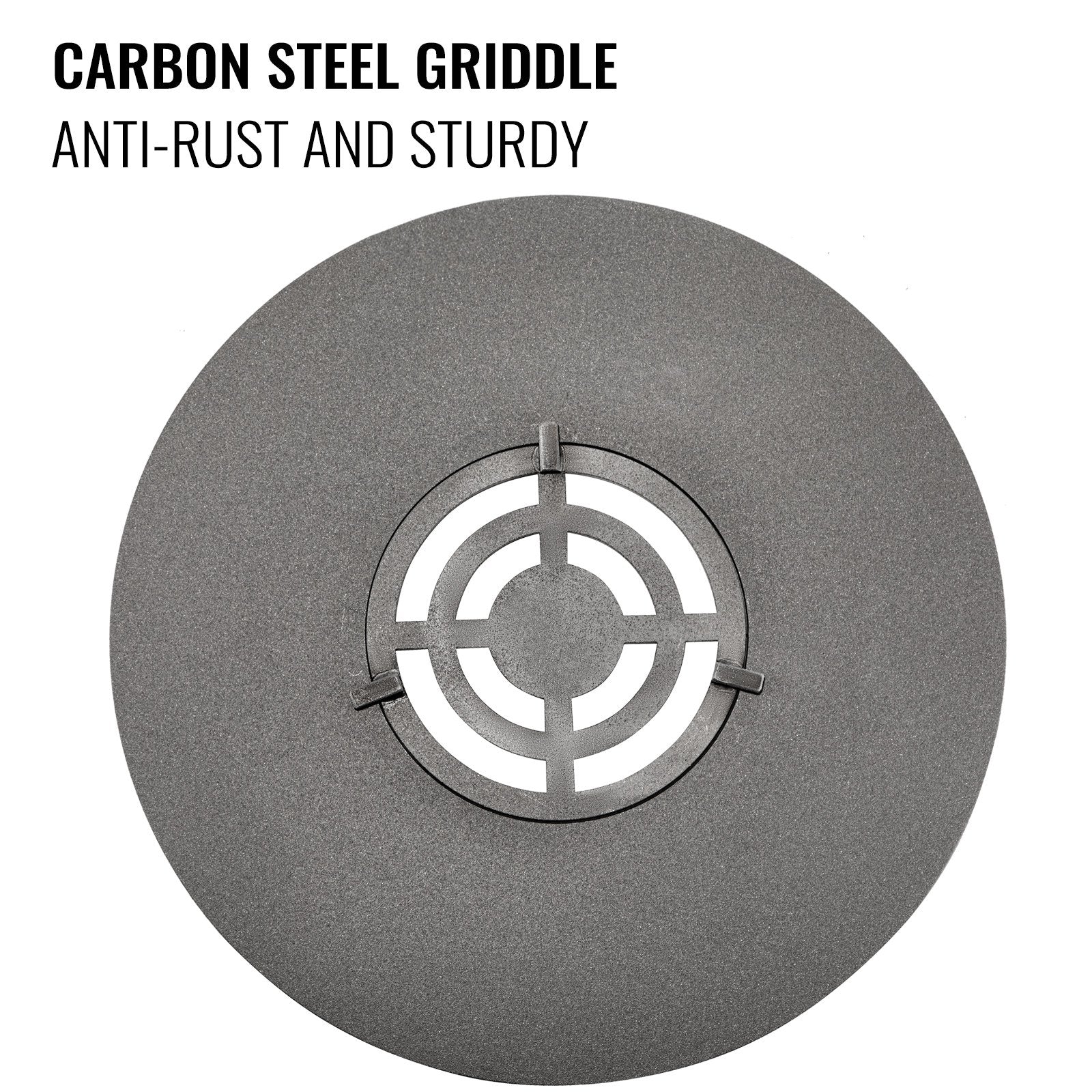 - 【PREMIUM CARBON STEEL】- Made of 45# carbon steel, these grill griddle inserts conduct heat faster and more even. They are also durable, sturdy, and have superior temperature control. These 1/4" thick round grill grates are built to last for a long time. Moreover, after seasoning, it is smooth and anti-stick.