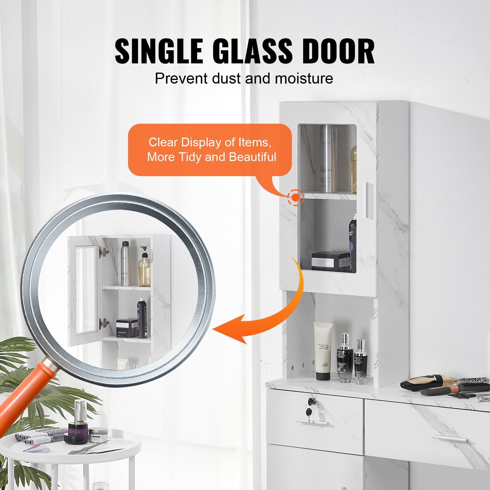 Salon Workstation, Wall-Mounted Unit for Hair Professionals, Spa Styling Storage Solution, Includes 1 Cabinet, 3 Shelves, 2 Drawers (1 with Lock), in White