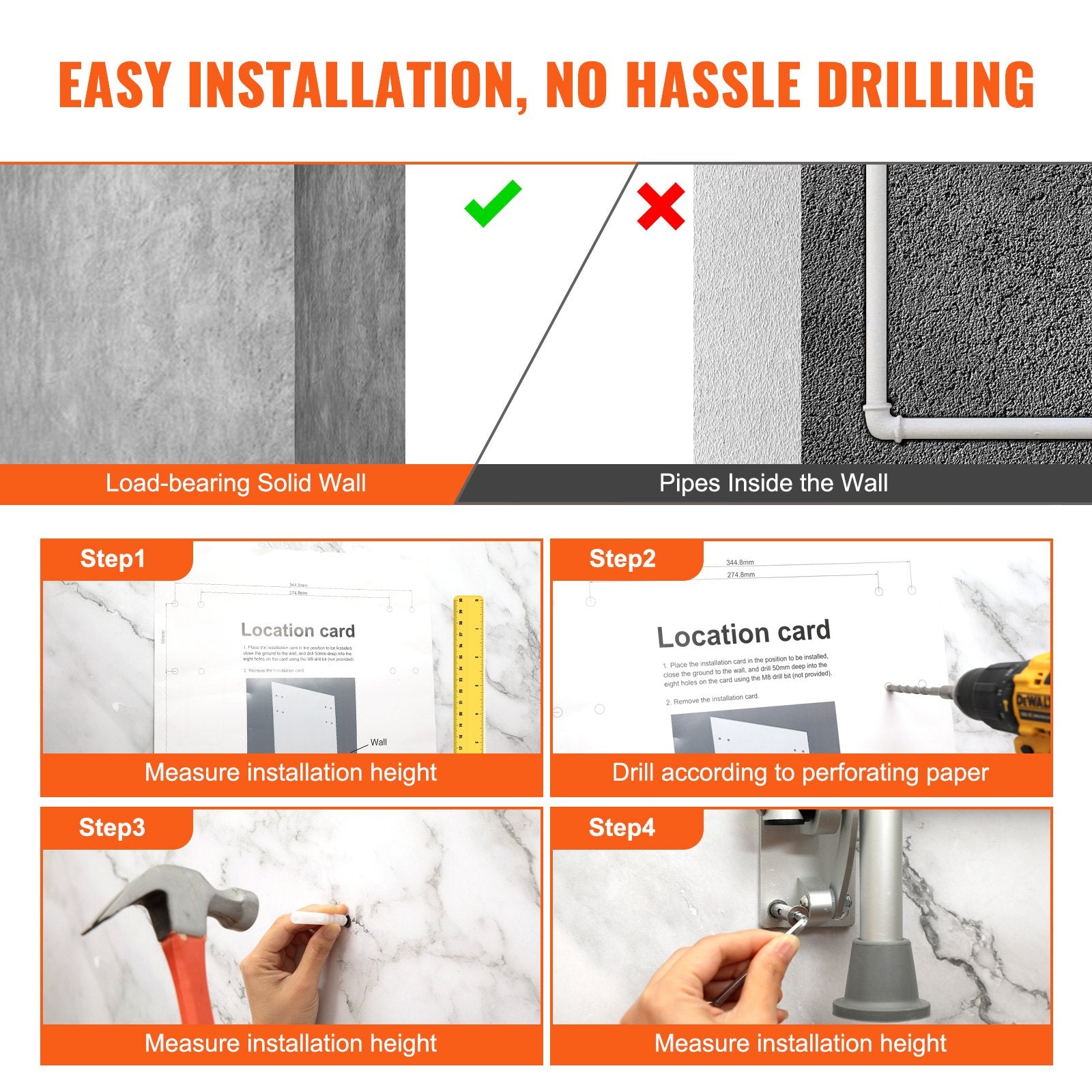 - Drill-Hole Wall Mounting: Thoughtfully equipped with mounting hole guiding sticker for precise drilling – no need for additional markings with a pen. Complete with 304 stainless steel screws and other accessories, ensuring secure fixation. Note: Install our folding shower seat on load-bearing solid walls.