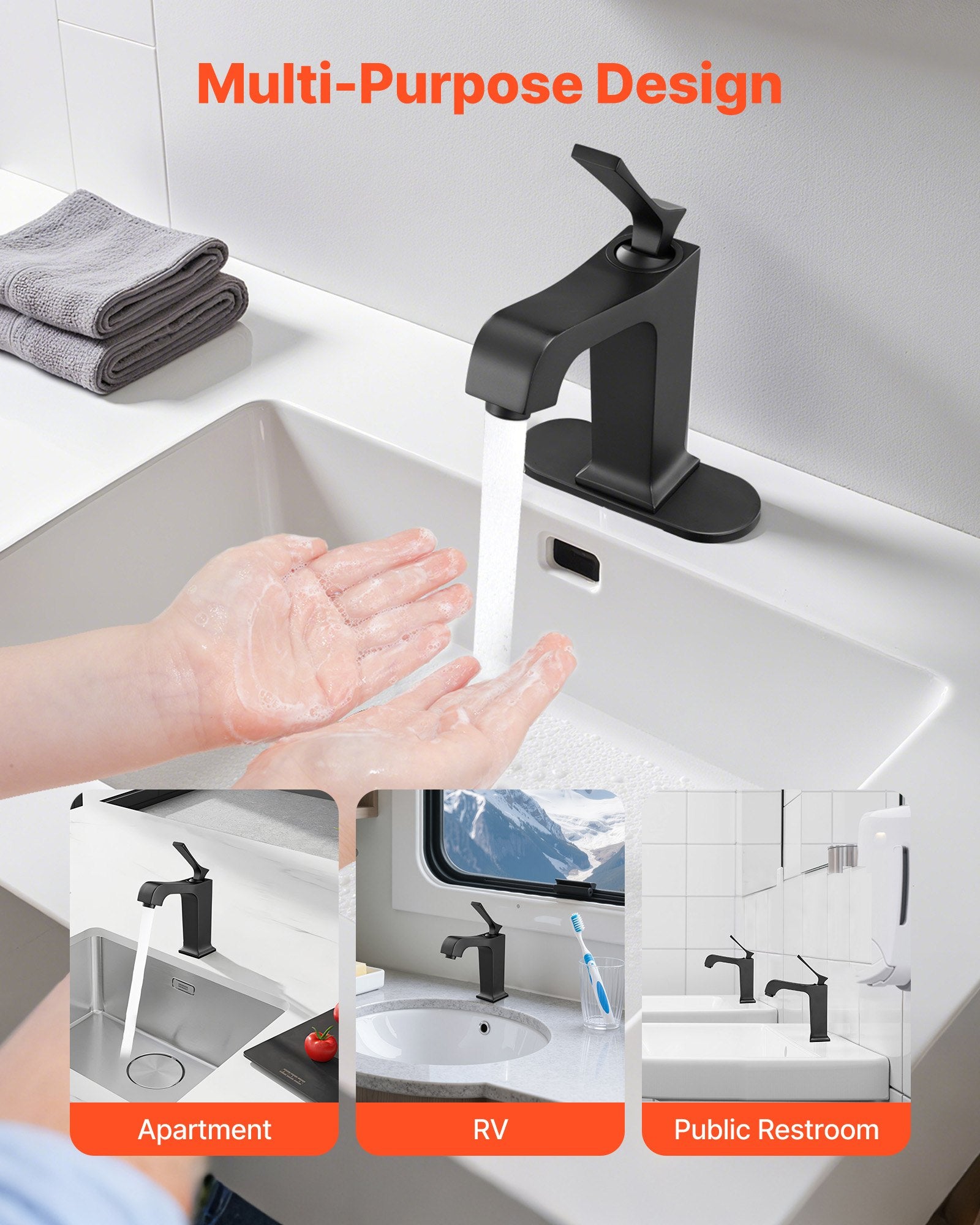- Temperature Control: Featuring a knob-style handle, this single handle sink faucet enables effortless one-handed control of both water temperature and flow. Whether you're holding a baby or carrying other items, you can conveniently manage the water flow with ease