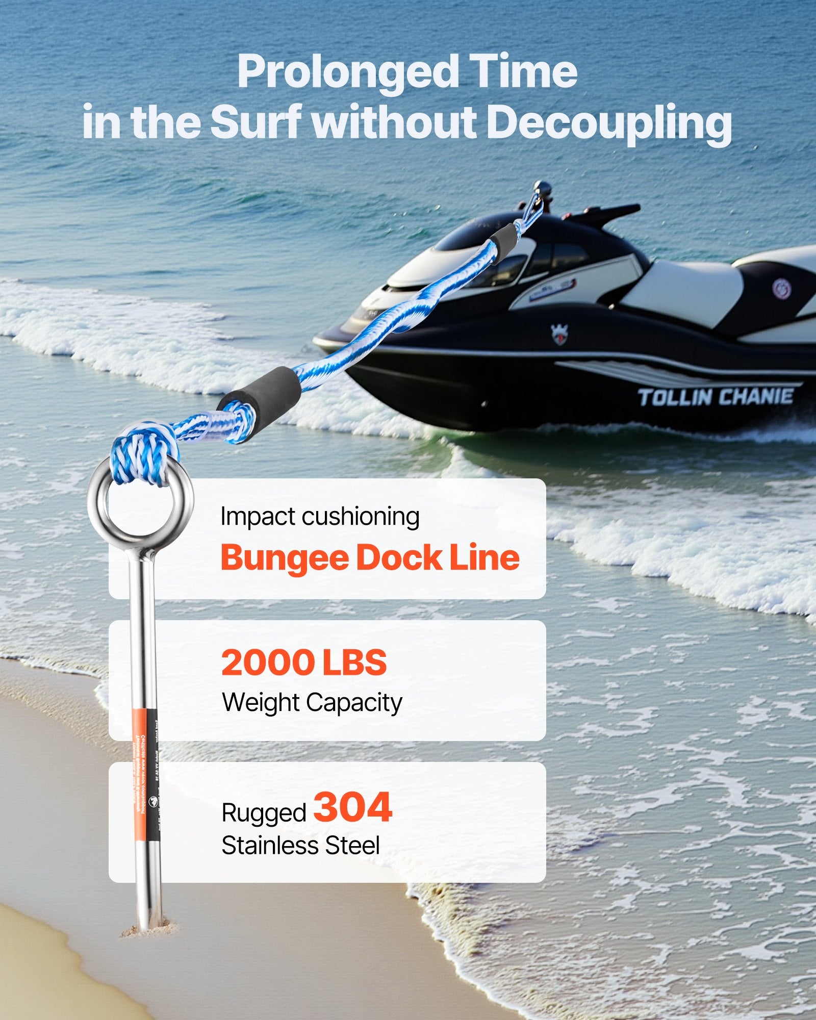 - Easy to Operate: Secure your boat in minutes by twisting the beach anchor into the sand with the T-handle, removing the handle, and tying the elastic rope. The elastic rope minimizes sudden pulls and impacts, avoiding detachment