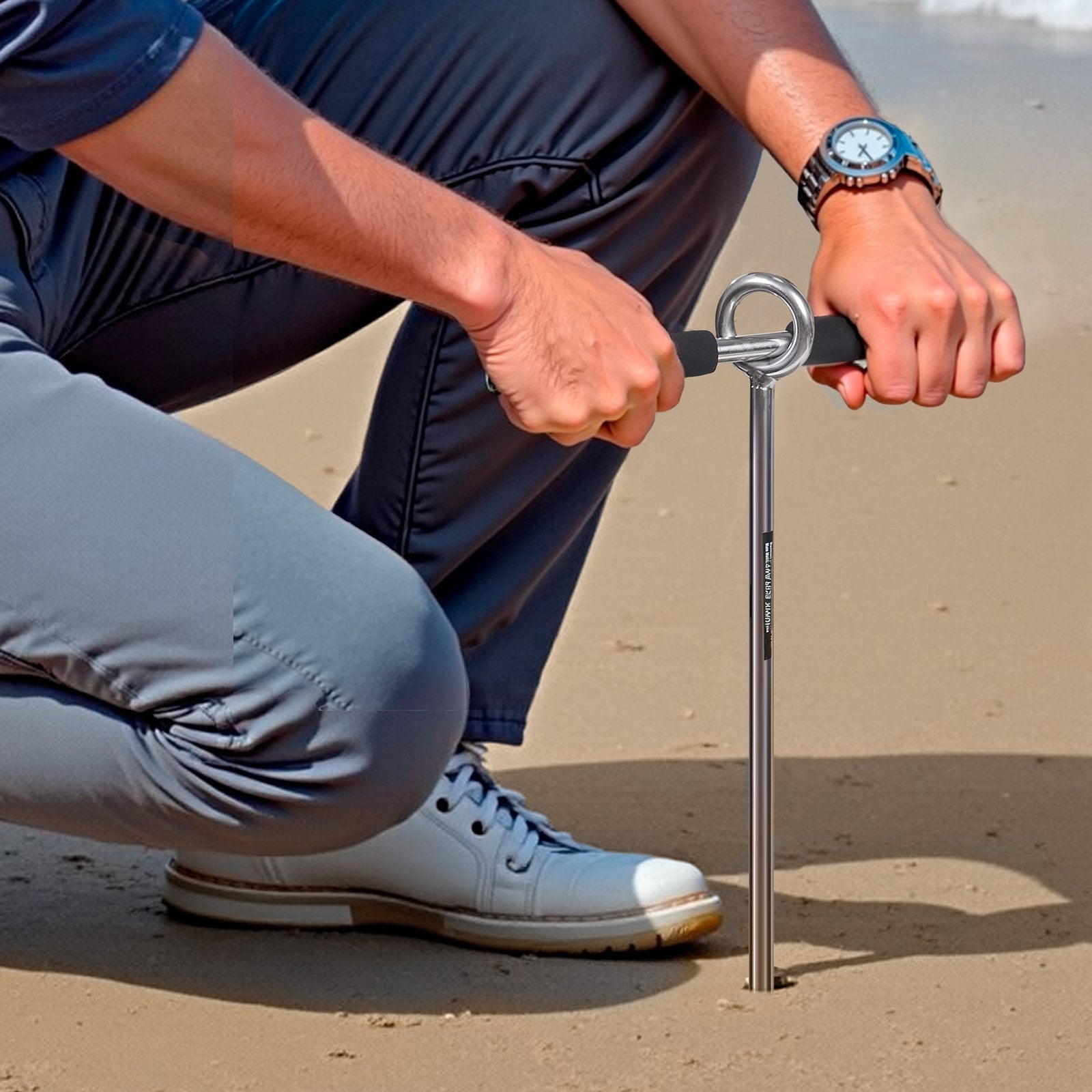 - Handle and Spiral Drill Design: The T-shaped handle with a soft foam grip helps twist the boat screw anchor into the sand. The spiral drill ensures a strong hold, and the detachable handle avoids the anchor loosening