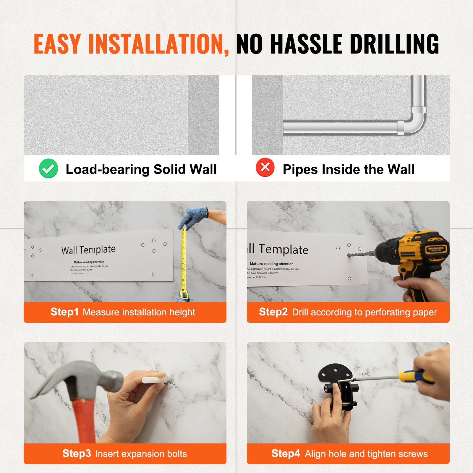 - Drill-Hole Wall Mounting: Thoughtfully equipped with mounting hole guiding sticker for precise drilling – no need for additional markings with a pen. Complete with bolt cap, 304 stainless steel screws, and an extra set of 2 stainless steel screws and bolt caps for added convenience. Note: Install our folding shower seat on load-bearing solid walls.