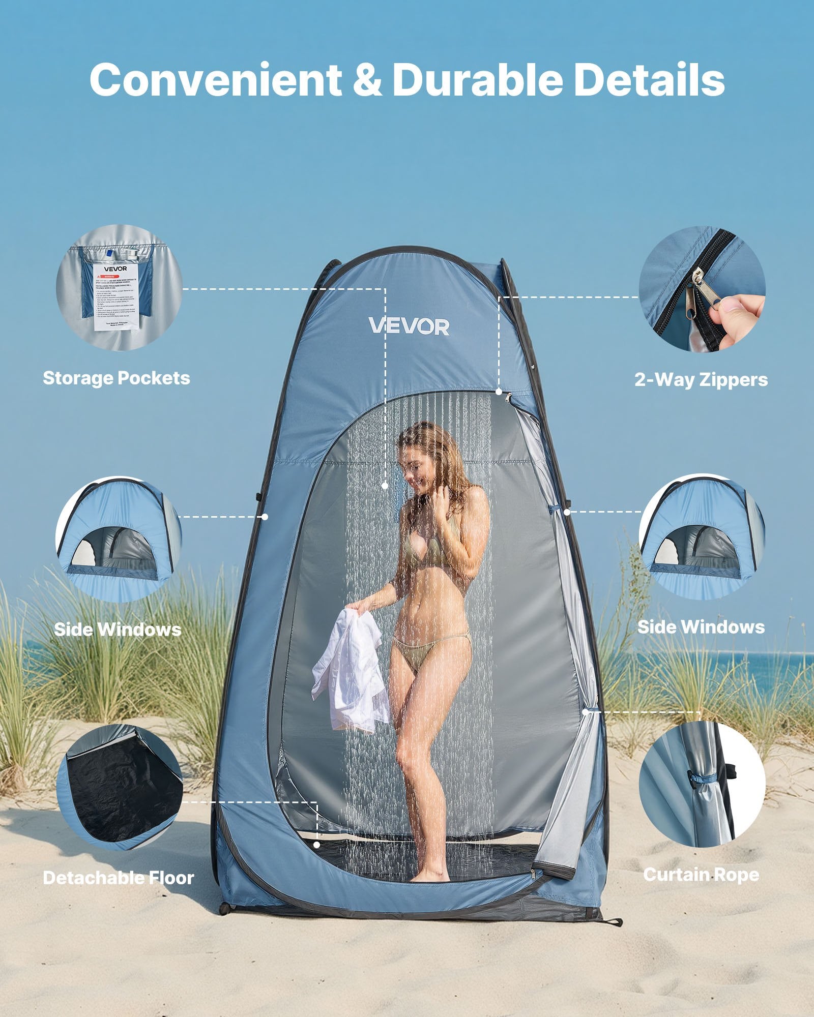 Pop up Shower Tent, Instant Portable Privacy Tent Changing Room with Ground Stakes, Ropes, and Carry Bag, 190T Polyester with Silver Coating, Quick Setup, for Camping, Beach, Fishing, Blue
