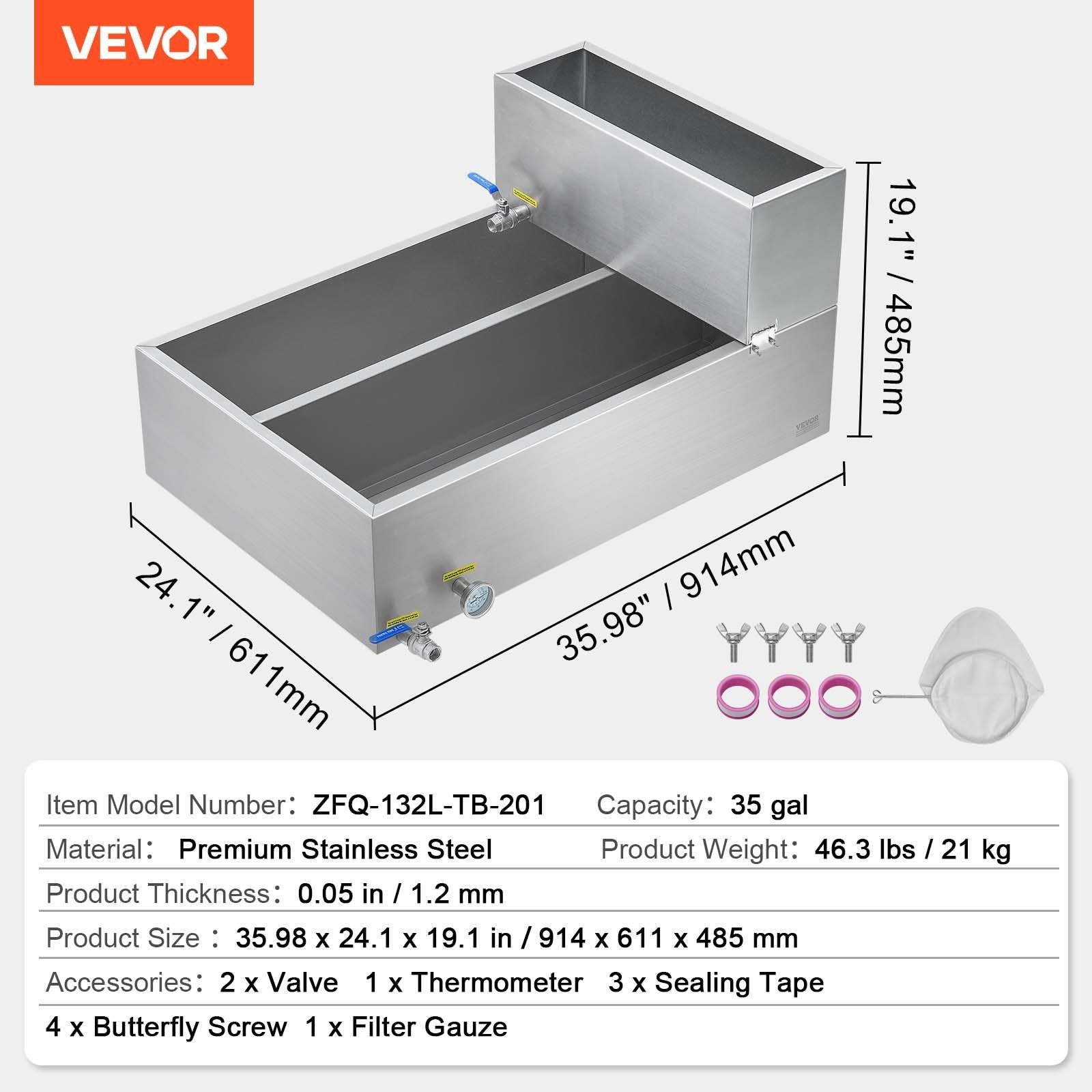 Maple Syrup Evaporator Pan, 35 Gallon, 509 Cups of 8.8oz Maple Syrup, Flat Evaporator Pan with Thermometer, 2 Valves and 3 Heating Methods, Stainless Steel Maple Syrup Pan for Home, Outdoor