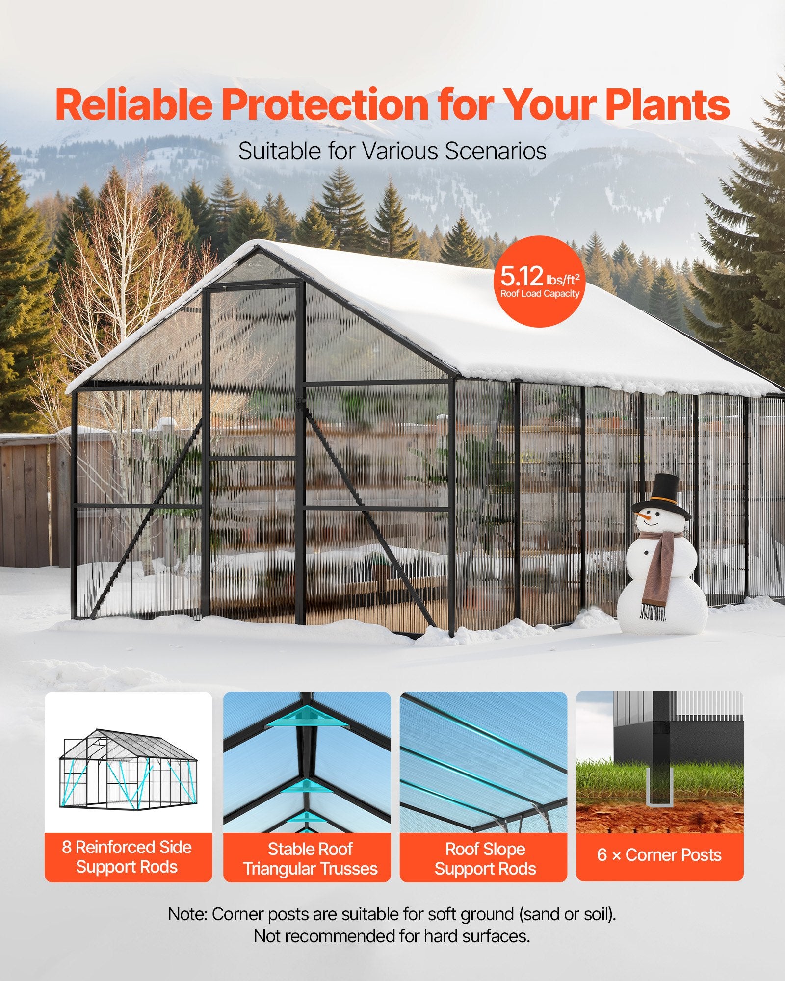 - Product Style: 8 × 14 ft Polycarbonate Greenhouse (Non-Electric)