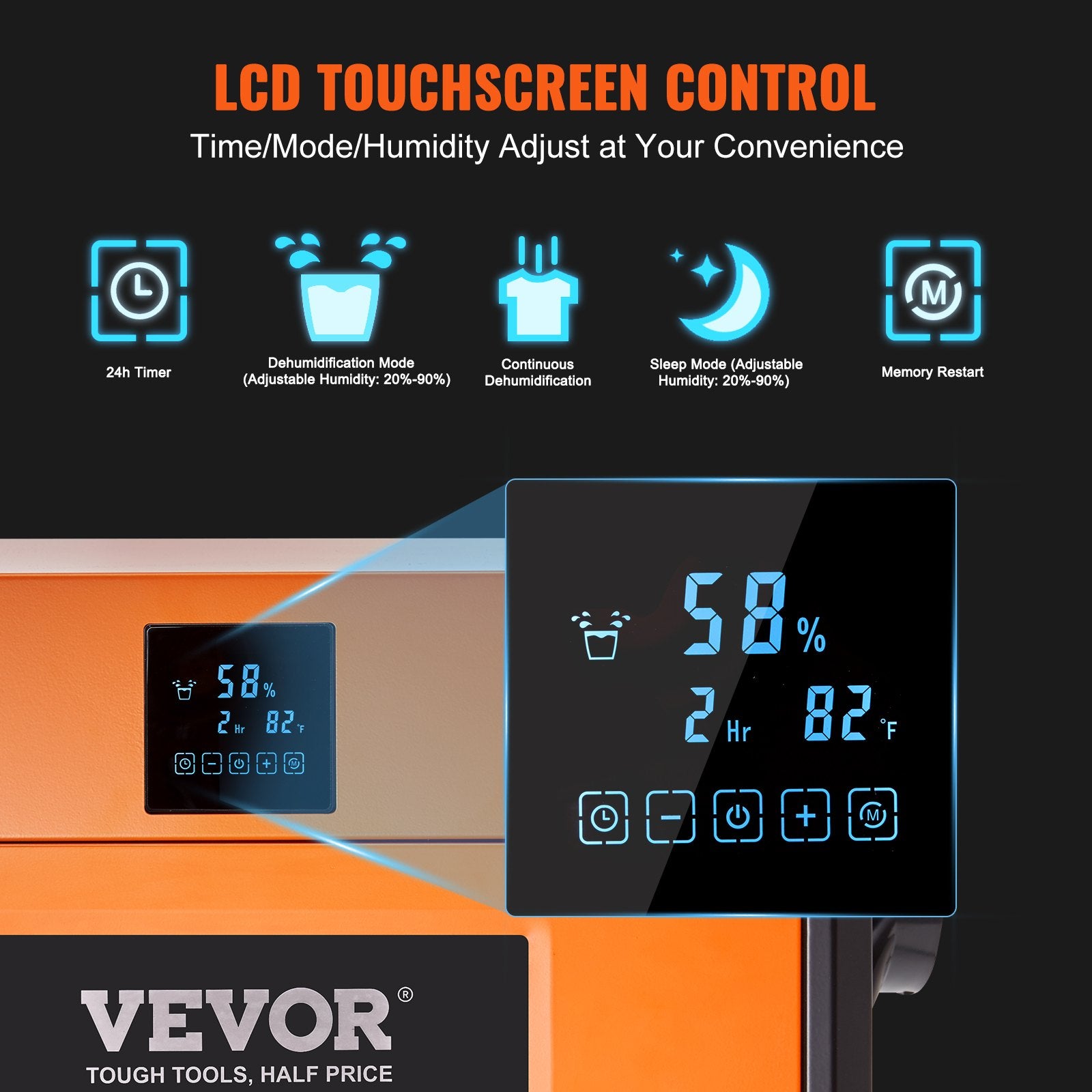 - Convenient Operation: LCD display for easy settings adjustment, including a 24-hour timer and memory function. Offers automatic dehumidification, continuous high-power dehumidification, and sleep mode. 3-speed options and customizable humidity settings for user convenience.