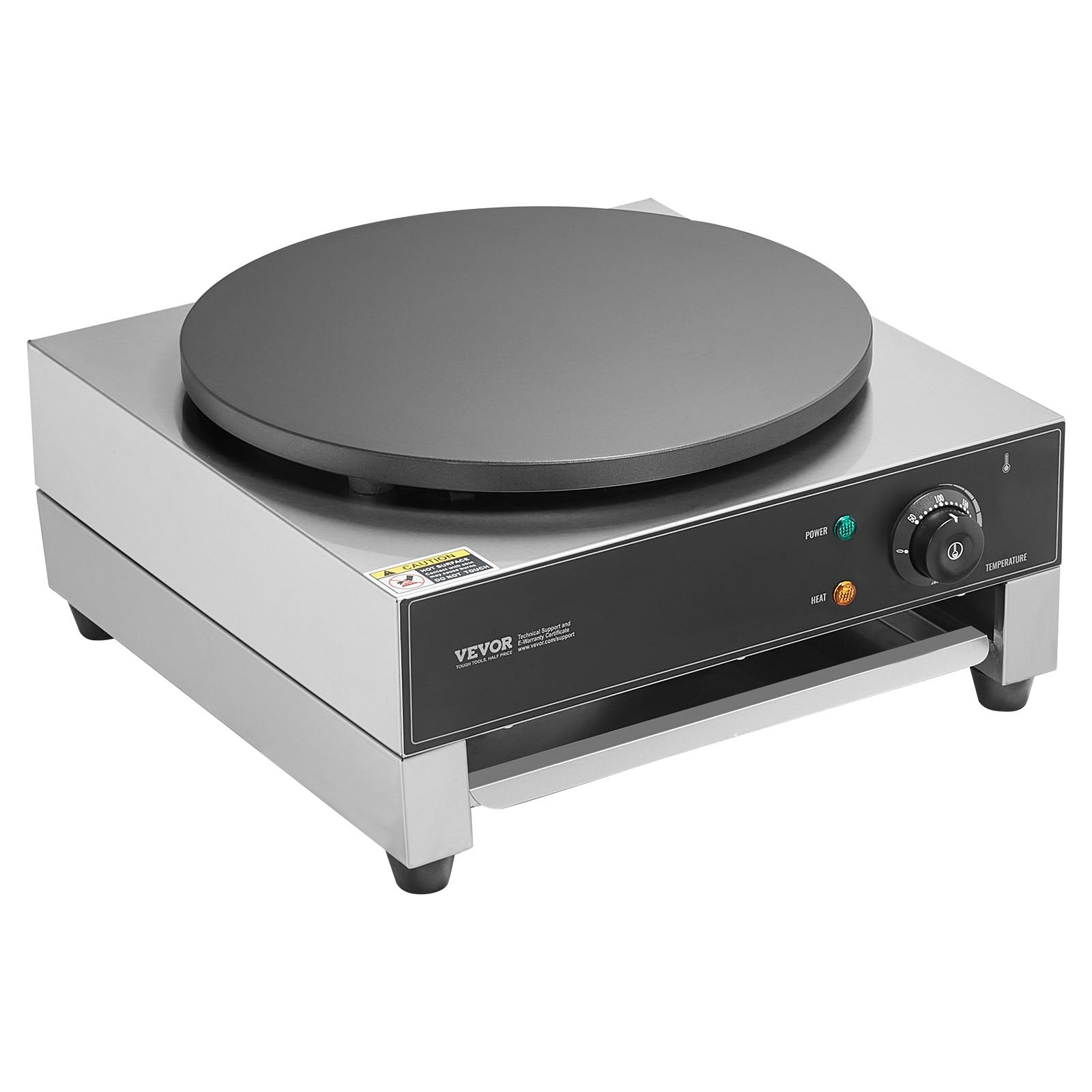 Electric Crepe Maker, 16-Inch Commercial Crepe Machine, 1700W Flat Plate Crepe Griddle, Nonstick Stainless Steel Pancake Making Machine, Desktop Circular Cereals Pancake Stove with Temp Control