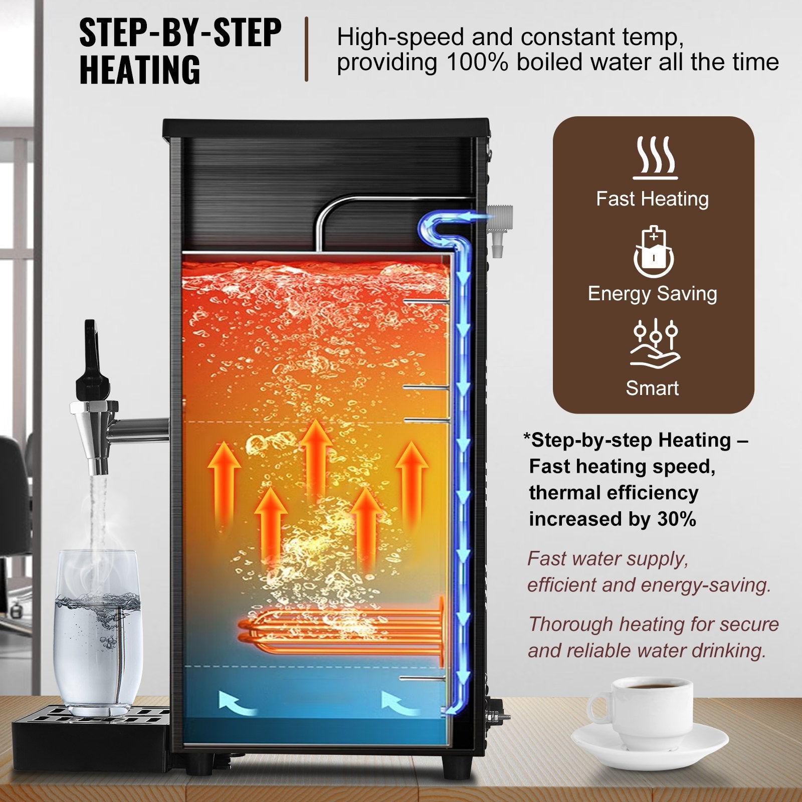 Commercial Water Boiler, Electric Hot Water Dispenser with 316 Stainless Steel Heating Tube, 1500W Step-by-step Fast Heating 50L per Hour Hot Water Boiler, for Coffee Tea Restaurant Office