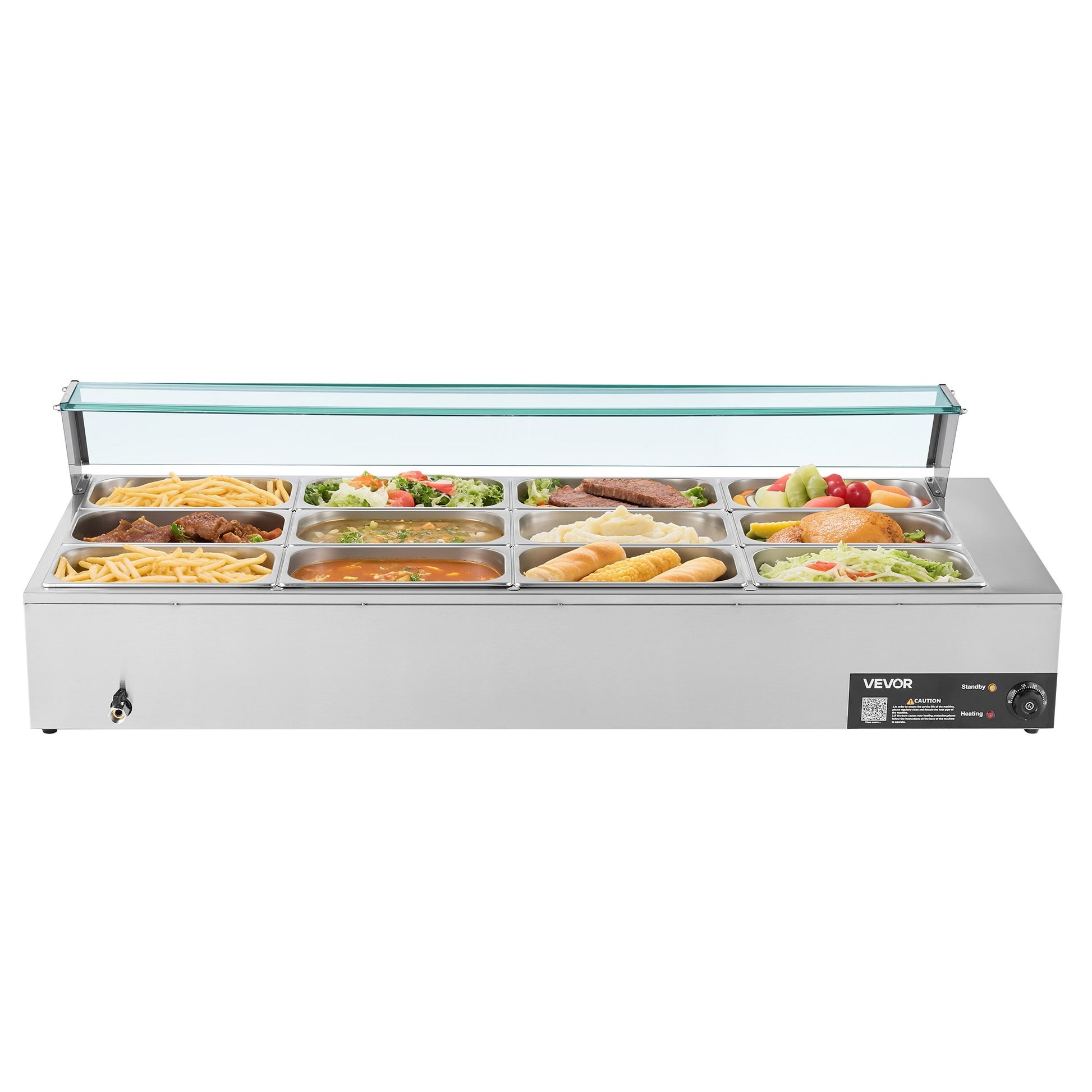 Commercial Food Warmer, 1700W Electric Stainless Steel Steam Food Warmer with Glass Cover, 12-Pan Countertop Buffet Bain Marie with Soup & Perforated Ladles, for Catering, Restaurant & Party