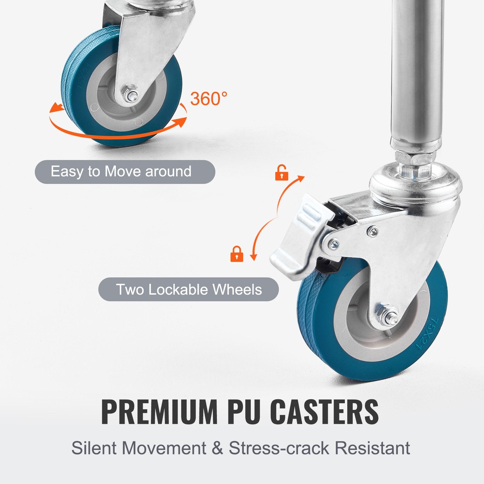 - Four Universal Wheels: Equipped with four 360° wheels, including two with foot brakes, this rolling cart allows easy transportation of tools or items. Say goodbye to the hassle of moving heavy objects.