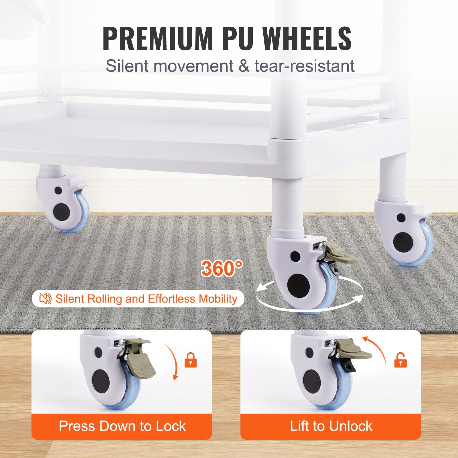 - Durable Material: Excellent impact and chemical corrosion resistance ensure the medical cart remains like new for long periods, reducing maintenance costs. Made from high-density ABS material and reinforced with internal steel plates, VEVOR's cart withstands wear and impact in daily use, ensuring long-term reliability.