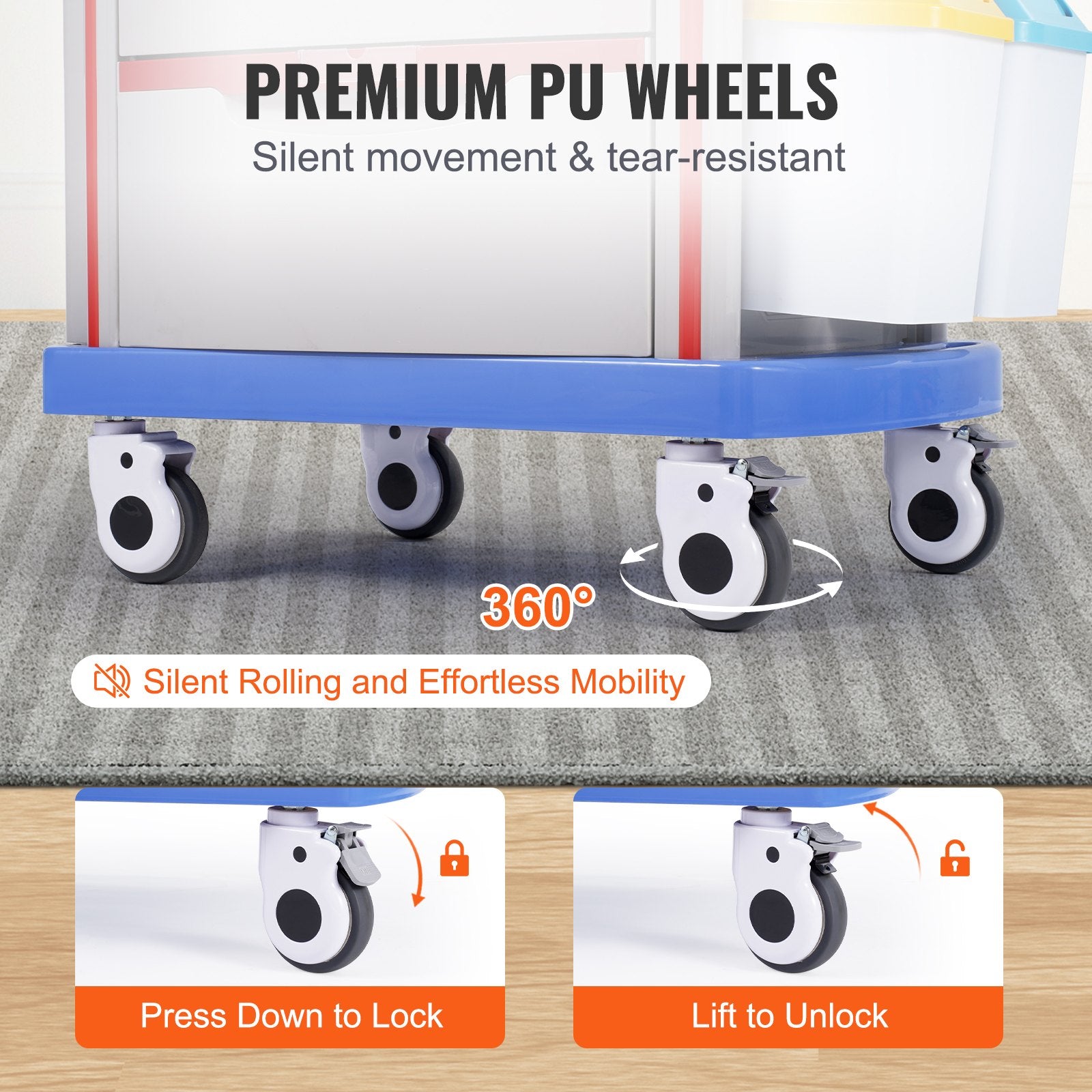 - Comfortable Maneuvering: Ergonomic handles and four silent, wear-resistant casters with locking rubber wheels provide smooth and stable movement. The cart maneuvers easily whether traveling in straight lines or making agile turns.