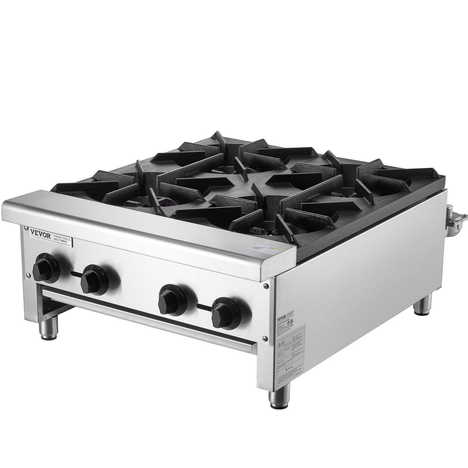 Commercial Gas Stove with 4 Burners, Propane and Natural Gas Countertop Cooking Stove Range, Stainless Steel Gas Hot Plate, Commercial Cooking Equipment for Restaurant, 112,000 BTU
