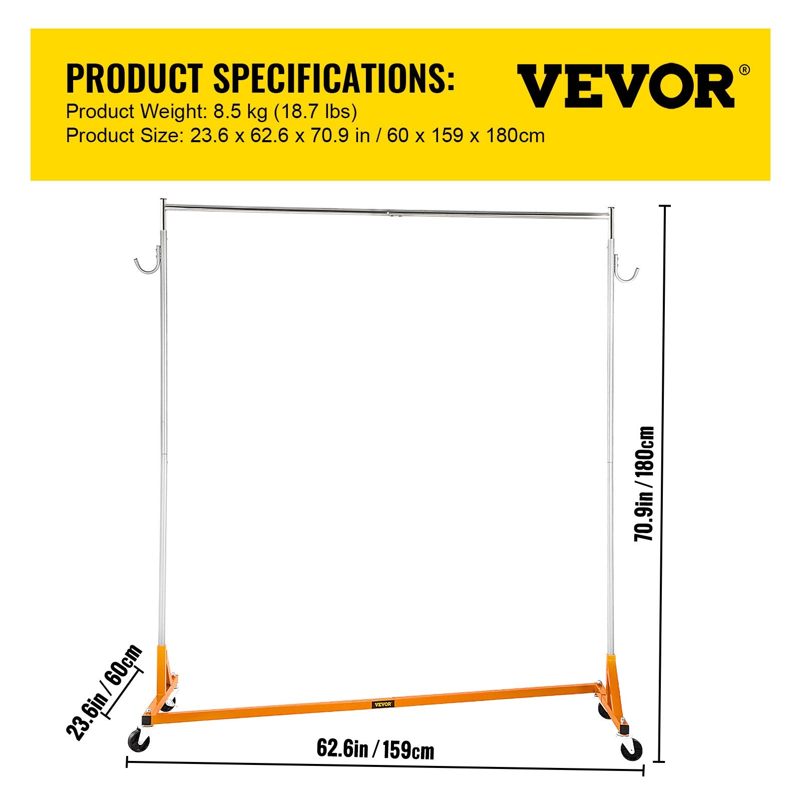 - A High Enough Clothing Rack: The 70.9"/180 cm Z base garment rack is high enough for hanging your long-style clothes. Owning this clothing rack, pick the clothes you want to wear at a glance.