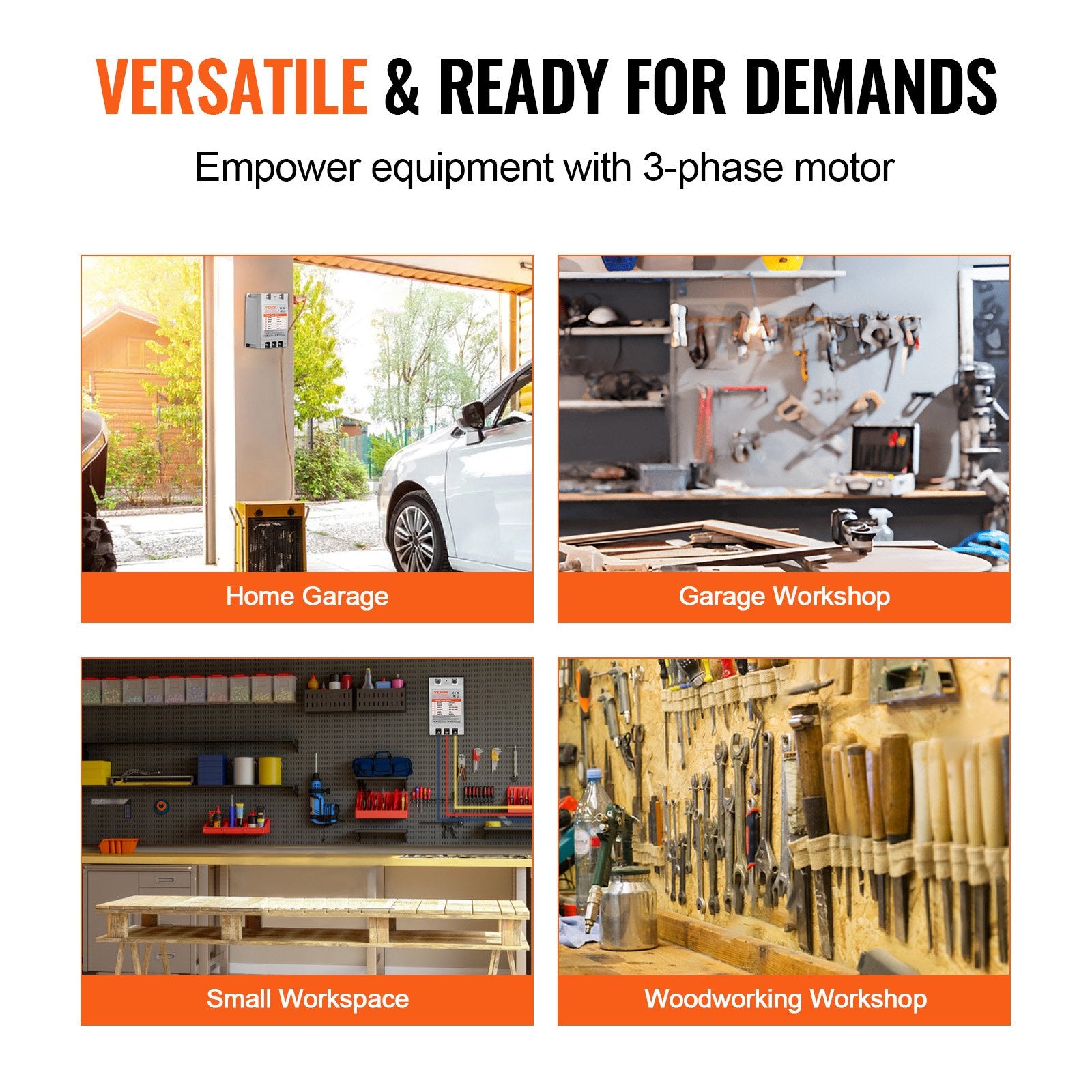 - Versatile Applications: This phase converter is perfectly suited for high-powered motor-driven equipment in both residential and commercial settings. Whether you're running power tools in your garage or managing woodworking machinery in small business, this converter provides stable and reliable three-phase power, meeting a wide range of motor power requirements.