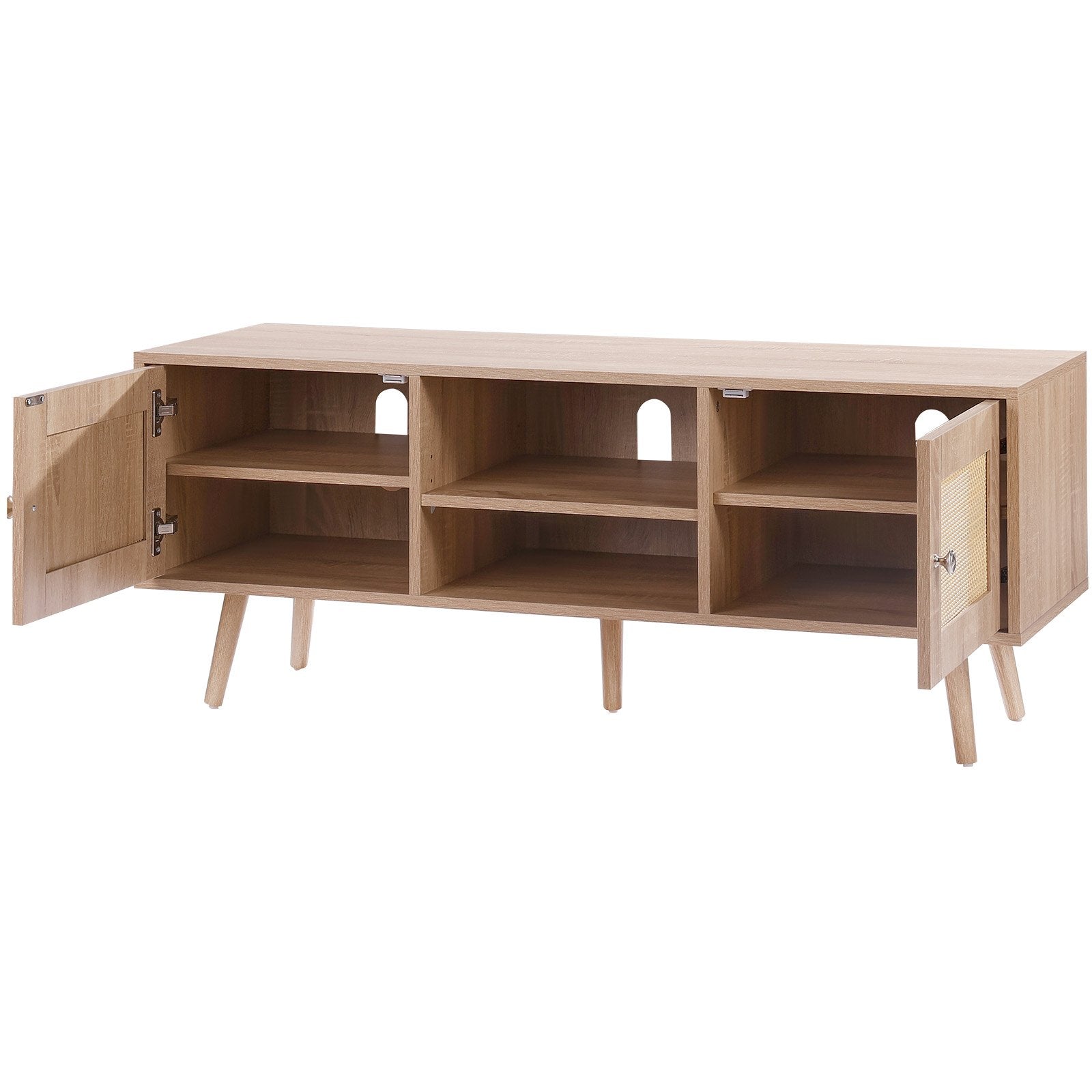 Rattan TV Stand, Boho TV Cabinet for 55 inch TV, Mid Century Modern TV Stand, Rattan TV Console with Adjustable Shelfs for Living Room, Media Room, Oak