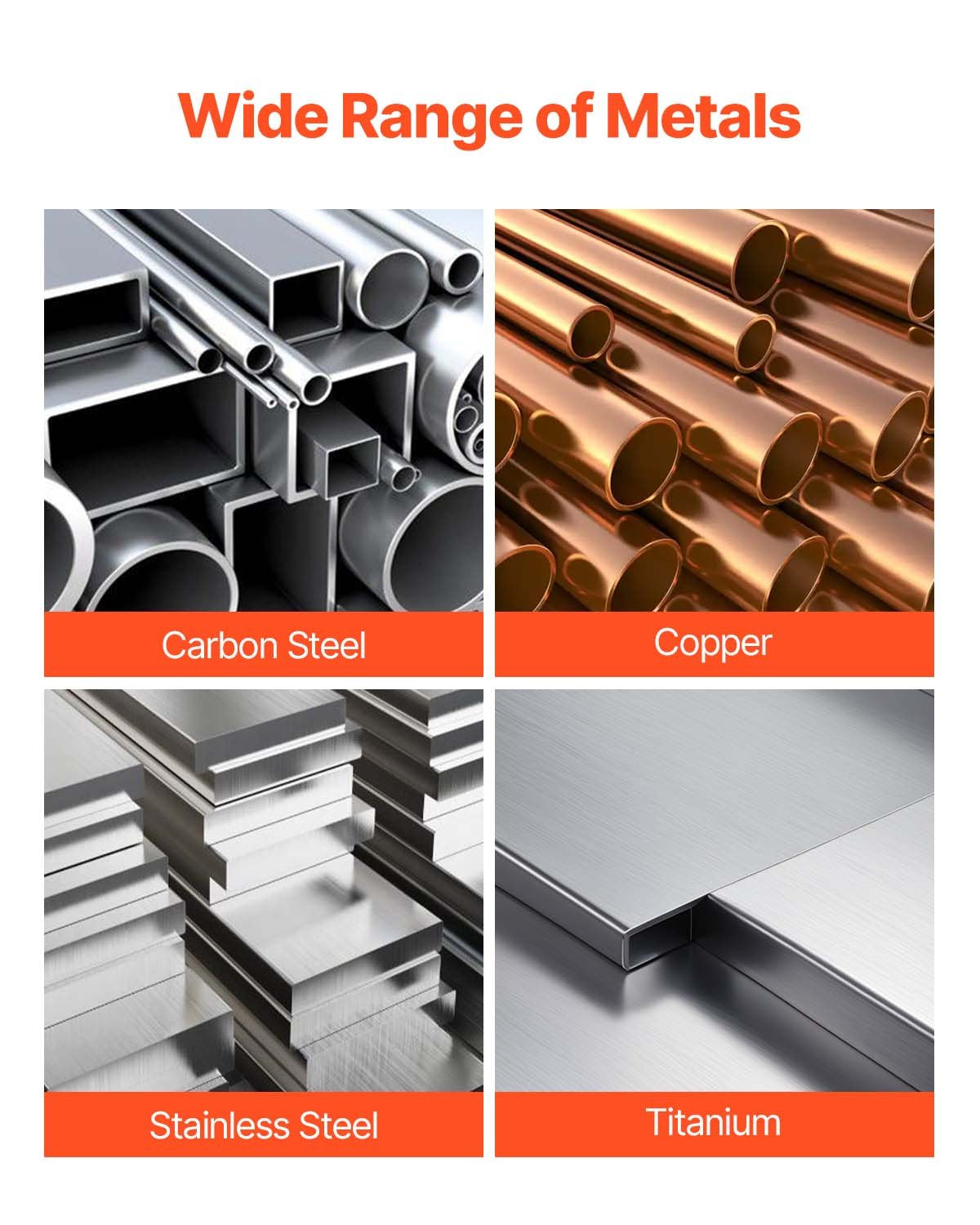 - Applicable Materials: This welding machine is ideal for welding carbon steel, copper, stainless steel, and titanium. It supports E7018 and E6013 electrodes and ensures security with features like VRD, overcurrent, overvoltage, overload, and overheat protection in our electric welding machine.