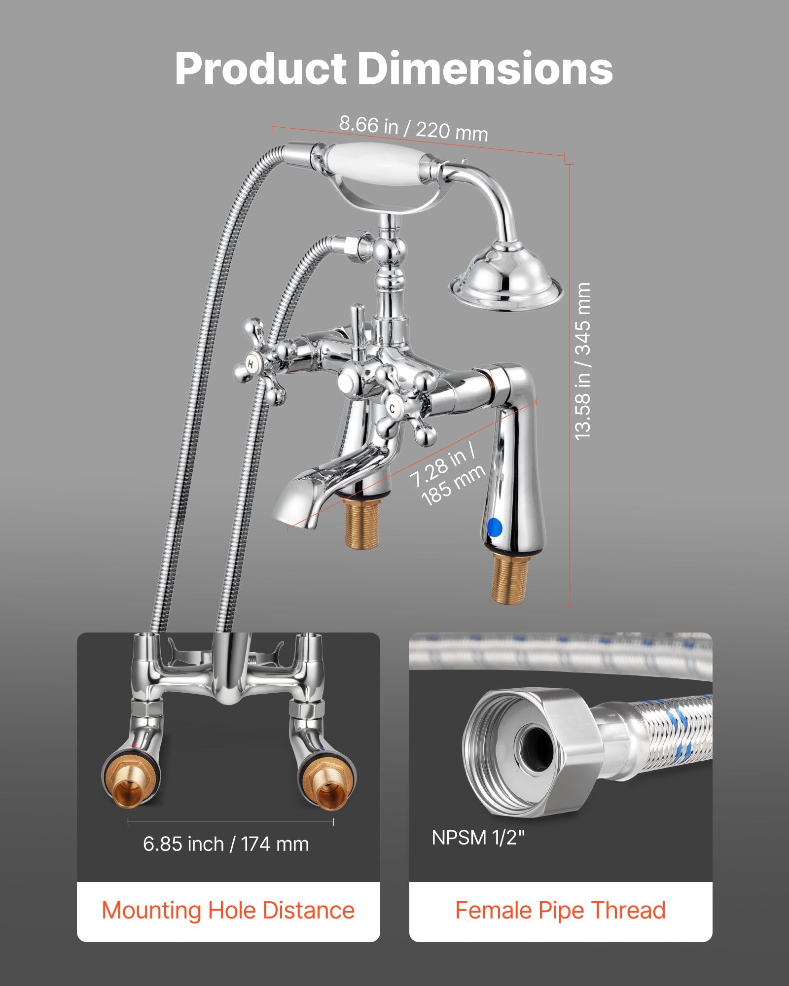 - Elegant and Durable: Built from solid brass with polished chrome finish, VEVOR clawfoot tub faucet resists corrosion and fading. With classic, stylish appeal, smooth water flow and flexible temperature control, it delivers a comfortable bathing experience while upgrading the bathroom's décor