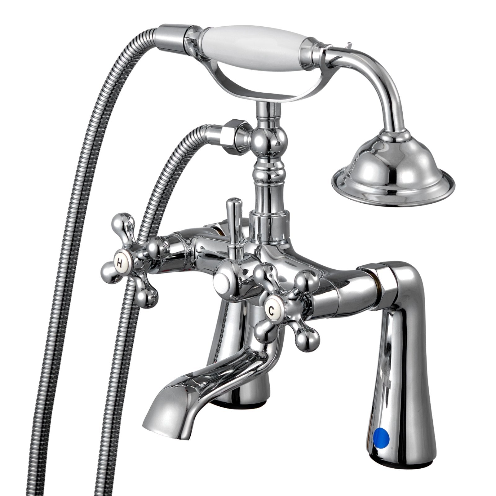 Clawfoot Tub Faucet, Deck Mount Bathtub Faucets with Handheld Shower, Vintage Polished Chrome Clawfoot Tub Filler Faucet Shower Kit with 360° Rotation Spout & 59-inch Long Hose for Bathtubs