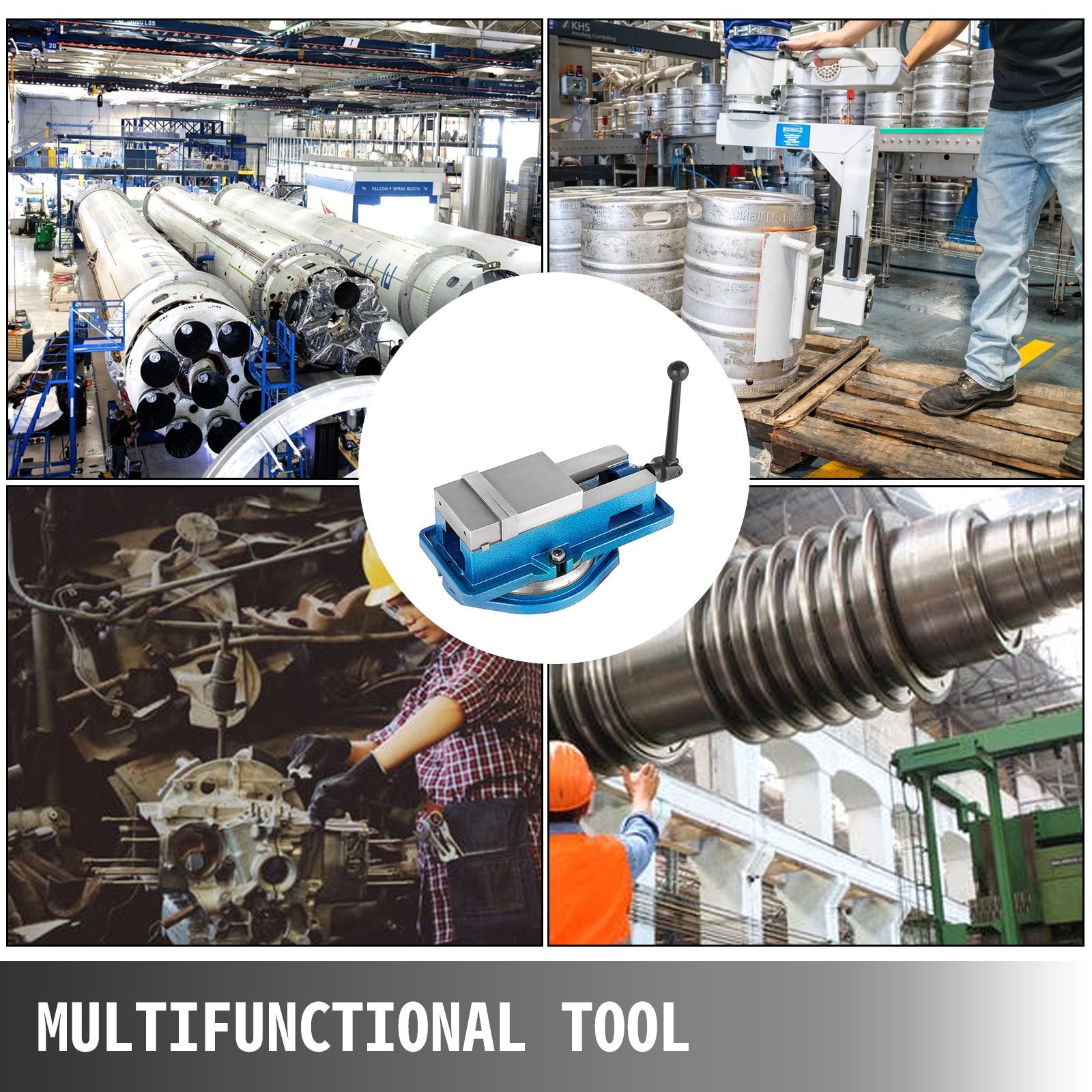 - 【POWERFUL CLAMPING FORCE】- After fine grinding treatment, the surface of the clamp is smooth and flat. Swiveling vise features with the perfectly aligned precision jaw. Maximum clamping force of 19 KN.