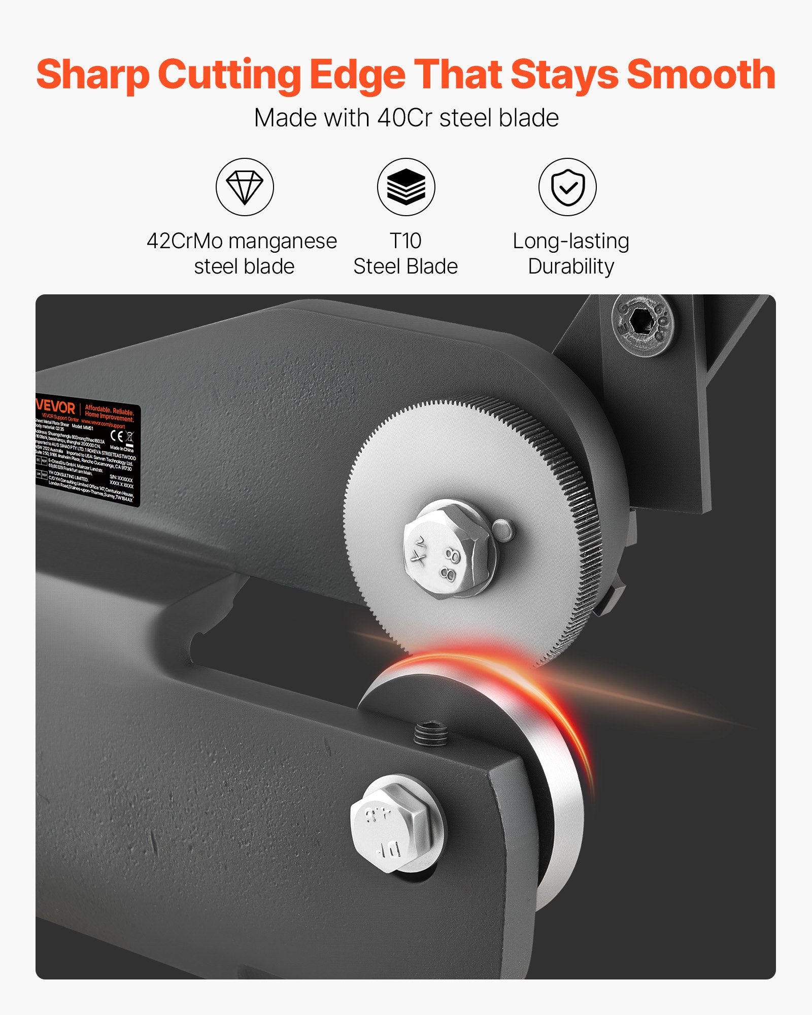 - Durable Materials: Our shear features 40Cr upper and lower blades, all heat-treated to HRC52-54 for sharp, precise cuts that resist edge rolling. Its Q235 steel frame ensures a strong, stable structure, effectively reducing vibration