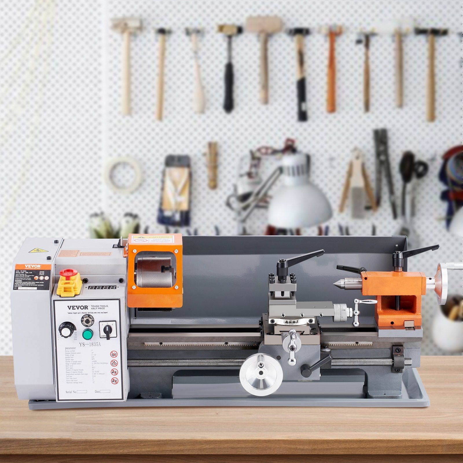 - Security Comes First: The benchtop metal lathe has chuck cover disconnection protection, automatic overload protection, and an added circuit board protector to avoid high-speed reverse short circuits, which protects the security of the operator and the machine motor.