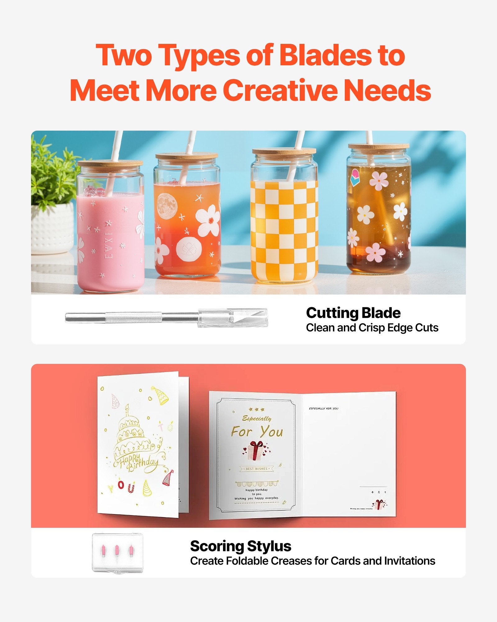 Cutting Machine, Automatic Edge Detection Vinyl Cutter Machine with Two Types of Blades, Design Software and Materials, Compatible with Multiple File Formats, for Creating Customized DIY Crafts